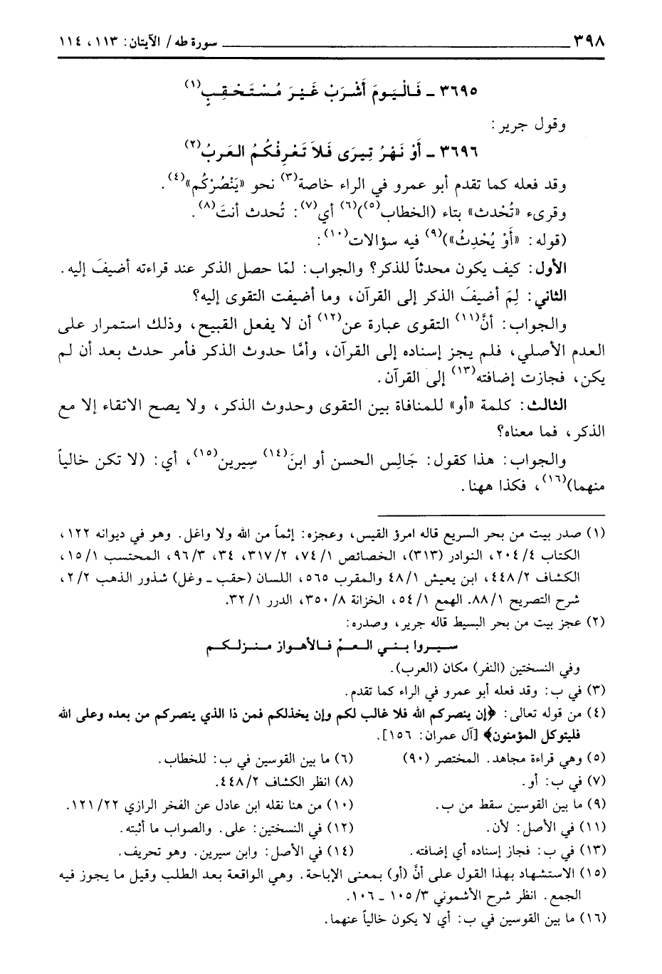 3696 - أَوْ نَهْرُ تِيرَى فَلاَ تَعْرِفُكُمُ العَربُ ... وقد فعله كما تقدم أبو عمر في الراء خاصة نحو» يَنْصُرُكُم «.