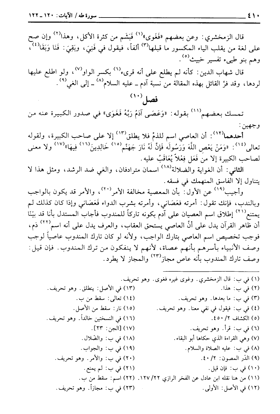قال الزمخشري: زعم بعضهم «فَغَوى» فَبَشَم من كثرة الأكل، وهذا وإن صح على لغة من يقلب الياء المكسور ما قبلها ألفاً، فيقول في فَنِيَ، وبَقِيَ: فَنَا وَبَقَا، وهم بنو طيئ تفسير خبيث.