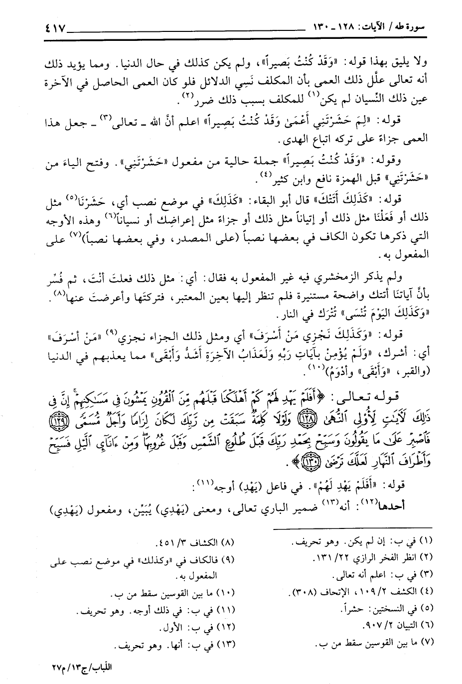 ولا يليق بهذا قوله: «وَقَدْ كُنتُ بَصِيراً» ، ولم يكن كذلك في حال الدنيا. ومما يؤيد ذلك أنه تعالى علَّل ذلك العمى بأن المكلف نَسِي الدلائل فلو كان العمى الحاصل في الآخرة عين ذلك النِّسيان لم يكن للمكلف بسبب ذلك ضرر.