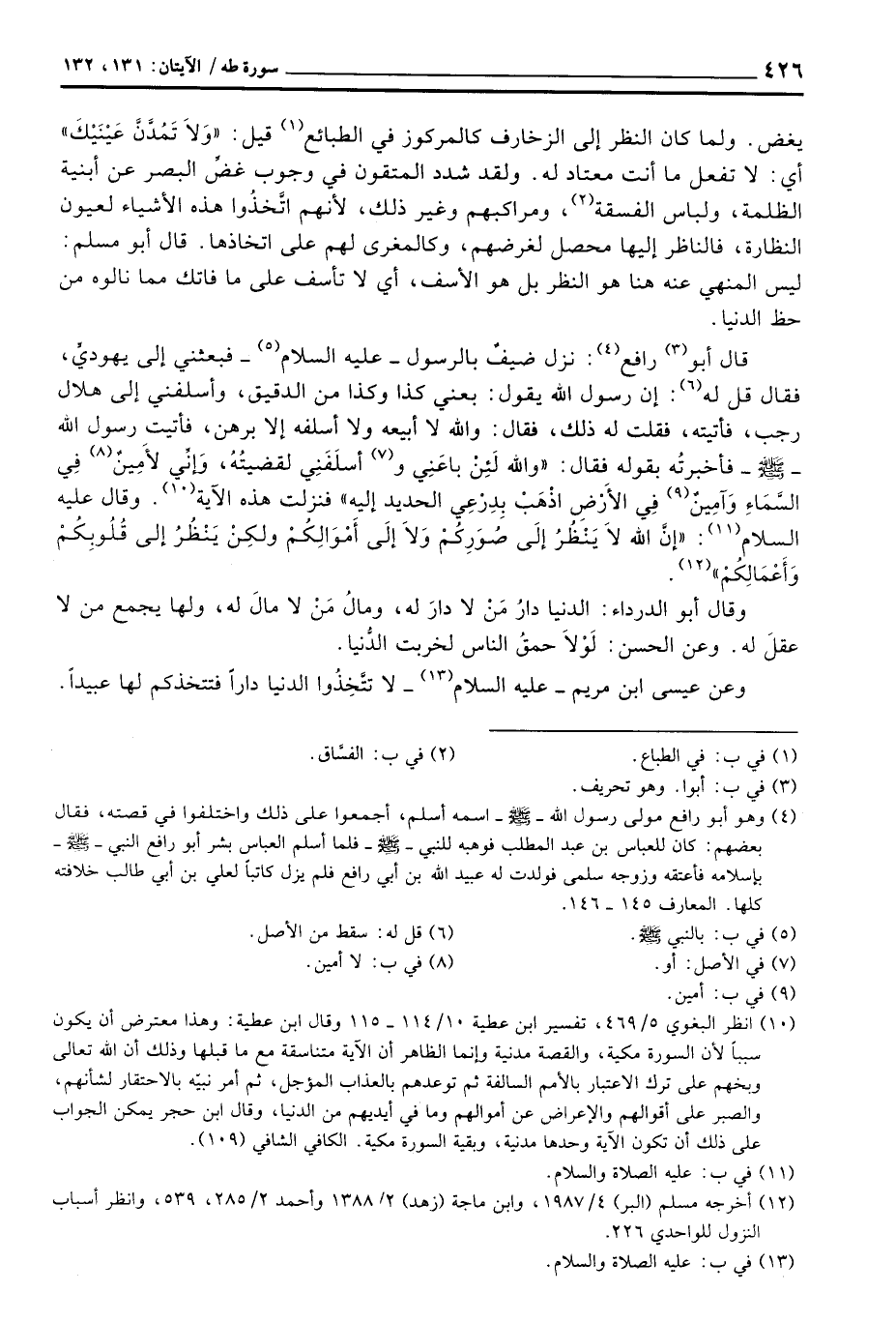 قال أبو رافع: نزل ضيفٌ بالرسول - عليه السلام - فبعثني إلى يهوديٍّ، فقال قل له: إن رسول الله يقول: يعني كذا وكذا من الدقيق، وأسلفني إلى هلال رجب، فأتيته، فقلت له ذلك، فقال: والله لا ابيعه ولا أسلفه إلا بهن، فأتيت رسول الله - صَلَّى اللَّهُ عَلَيْهِ وَسَلَّم َ - فأخبرته بقوله فقال: «والله لَئِنْ باعَنِي وأسْلَفَنِي لقضيتُهُ، وَإنِّي لأَمشينٌ فِي السَّمَاءِ وَآمِينٌ فِي الأَرْضِ اذْهَبْ بِدِرْعِي الحديد إليه» فنزلت هذه الآية. وقال عليه السلام: «إنَّ اللهَ لاَ يَنْظُرُ إلَى صُوَرِكُمْ وَلاَ إلَى أَمْوَالِكُمْ ولكِنْ يَنْظُرُ إلى قُلُوبِكُمْ وَأعْمَالِكُمْ» .