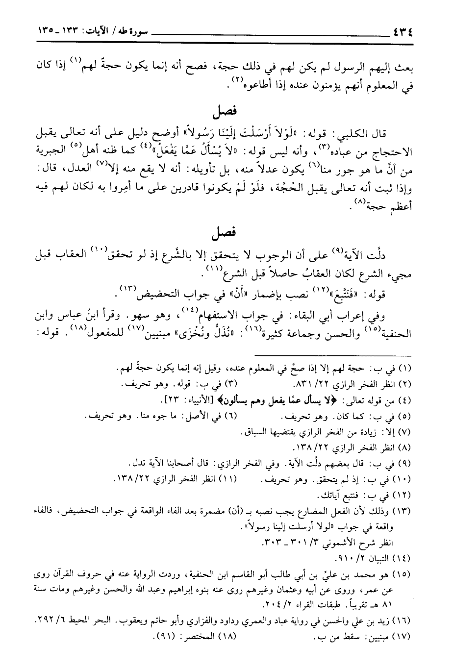 قال الكلبي: قوله: " لولا أرسلت إلينا رسولا " أوضح دليل على أنه تعالى يقبل الاحتجاج من عباده، وأنه ليس قوله: " لا يسأل عما يفعل " كما ظنه أهل الجبرية من أن ما هو جور منا يكون عدلا منه، بل تأويله: أنه لا يقع منه إلا العدل، قال: وإذا ثبت أنه تعالى يقبل الحجة، فلو لم يكونوا قادرين على ما أمروا به لكان لهم فيه أعظم حجة.