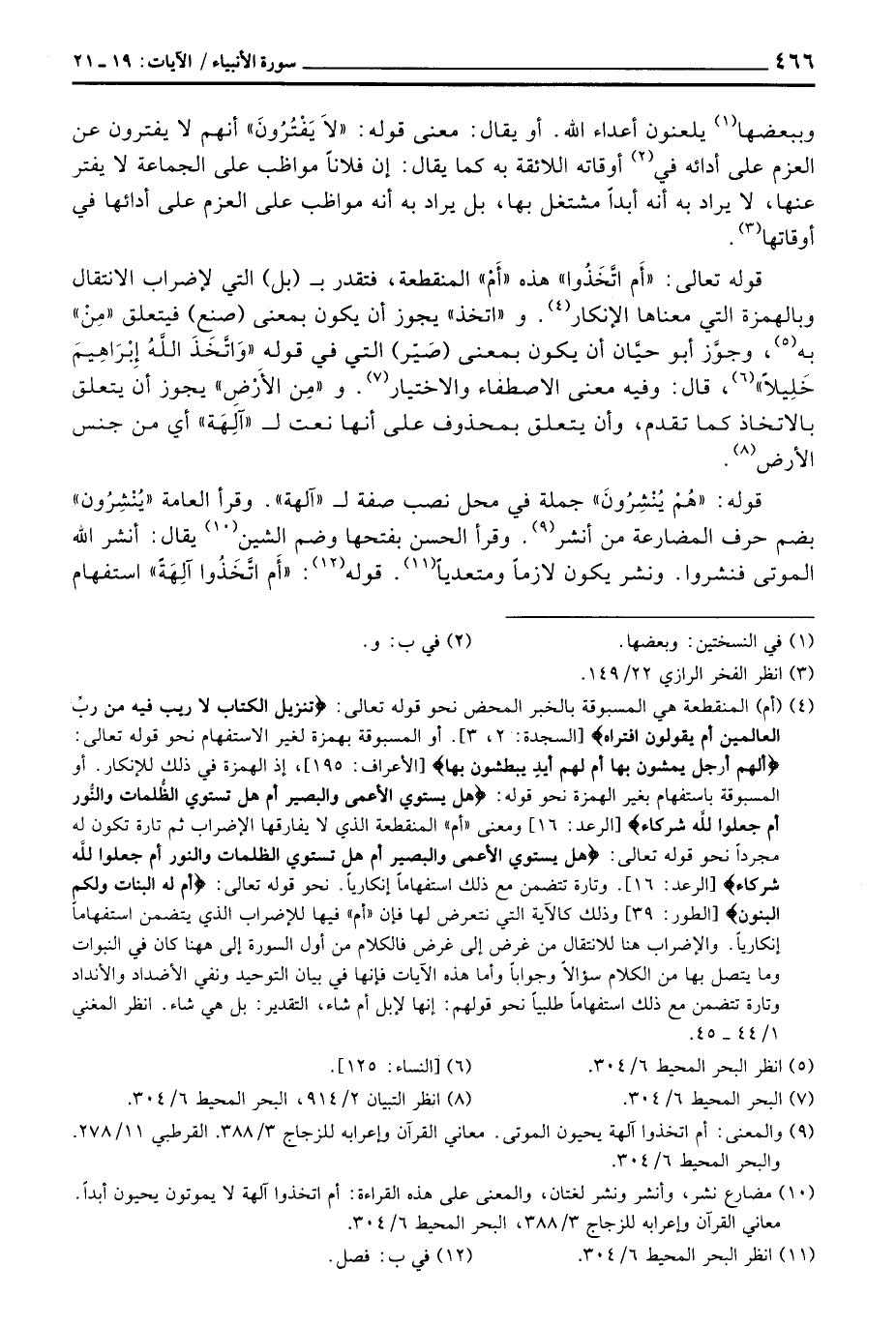 قوله تعالى: «أمِ اتَّخَذُوا» هذه «أَمْ» المنقطعة، فتقدر ب (بل) التي لإضراب الانتقال وبالهمزة التي معناها الإنكار. و «اتخذ» يجوز أن يكون بمعنى (صنع) فيتعلق «مِنْ» به وجوَّز أبو حيَّان أن يكون بمعنى (صَيَّر) التي في قوله {واتخذ الله إِبْرَاهِيمَ خَلِيلاً} [النساء: 125] ، فقال: وفيه معنى الاصطفاء والاختيار. و «مِنَ الأرْضِ» يجوز أن يتعلق بالاتخاذ كما تقدم، وأن يتعلق بمحذوف على أنها نعت ل «ألِهَة» أي من جنس الأرض.