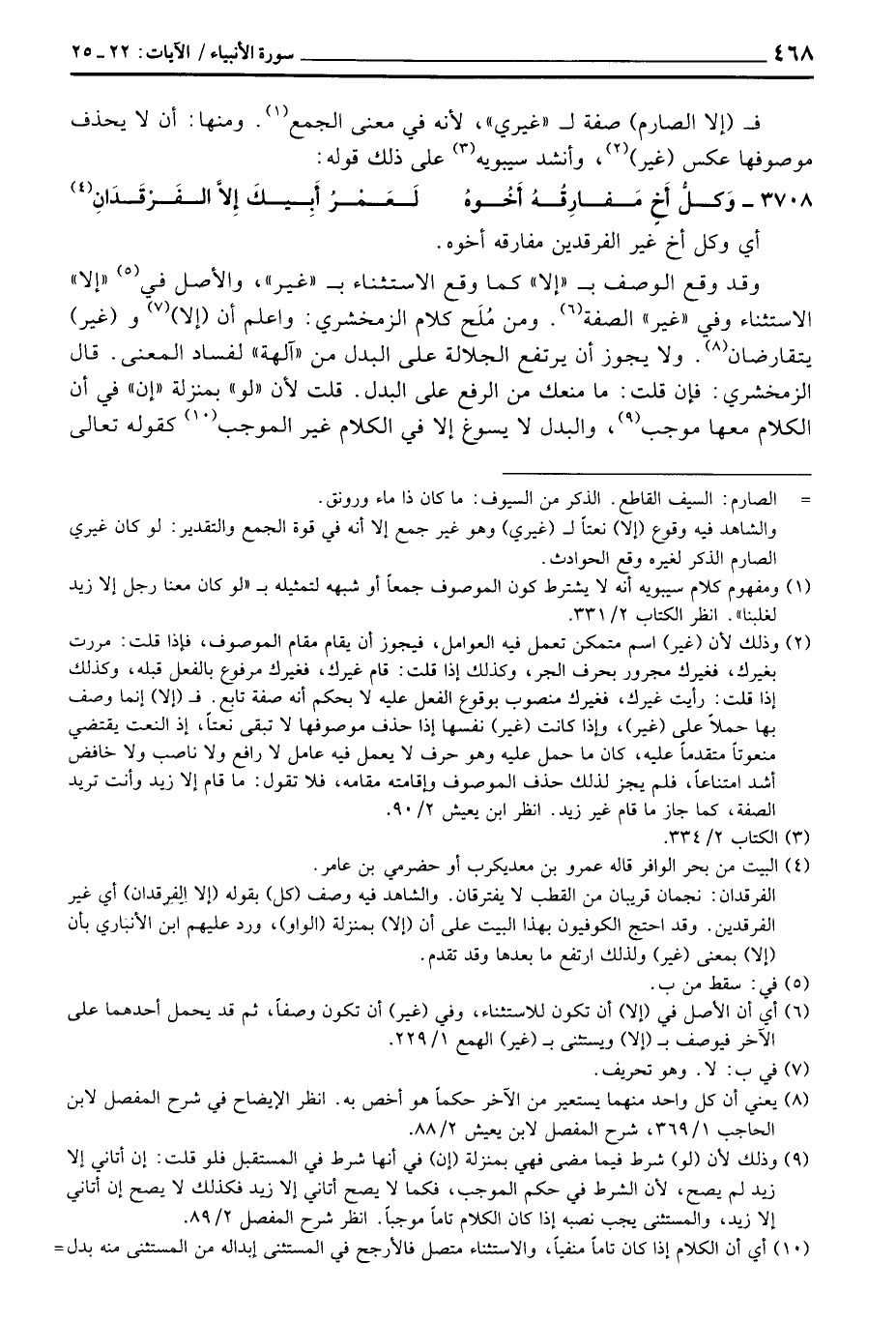 ف (إلا الصارم) صفة ل «غيري» ، لأنه في معنى الجمع. ومنها: أن لا يحذف موصوفها عكس (غير) ، وأنشد سيبويه على ذلك قوله: