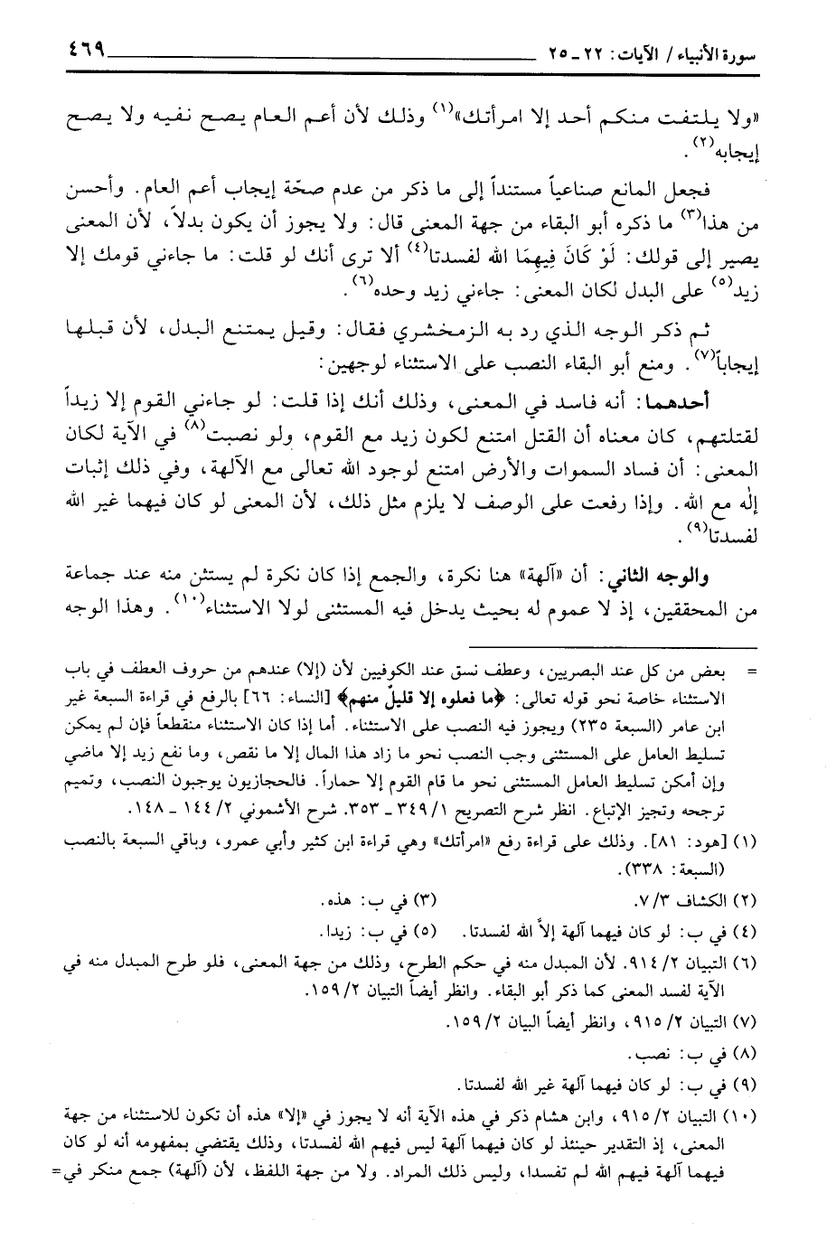 والوجه الاثني: أن «آلهة» هنا نكرة، والجمع إذا كان نكرة لم يستثن منه عند جماعة من المحققين، إذ لا عموم له بحيث يدخل فيه المستثنى لولا الاستثناء. وهذا الوجه