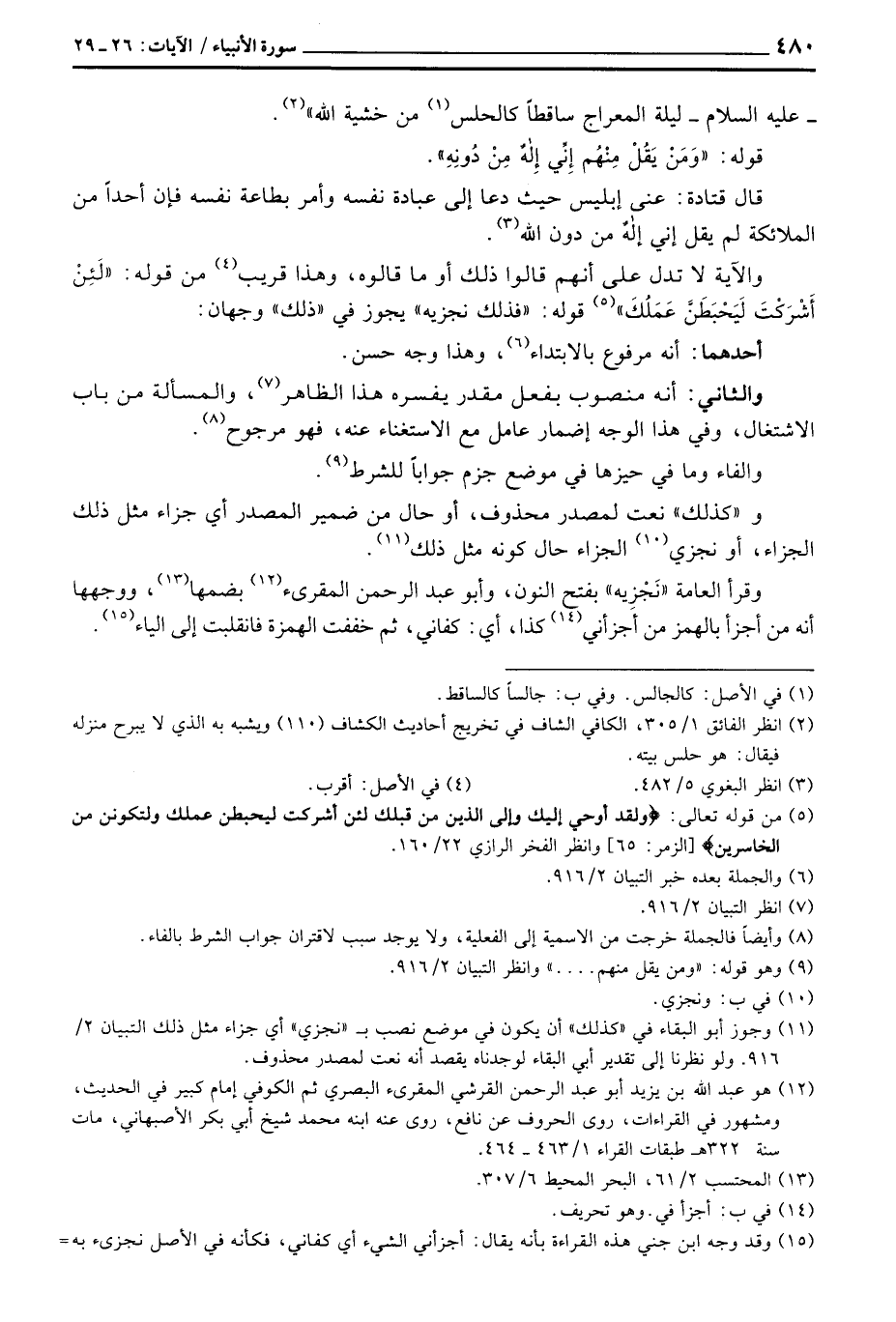 وقرأ العامة» نَجْزِيه «بفتح النون، وأبو عبد الرحمن المقرئ بضمها، ووجهها أنه من أجزأ بالهمز من أجزائي كذا، أي: كفاني، ثم خففت الهمزة فانقلبت إلى الياء.