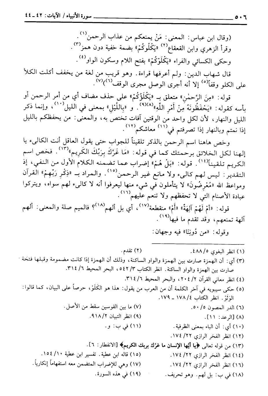 وخص ها هنا اسم الرحمن بالذكر تلقيناً للجواب حتى يقول العاقل أنت لكالئ يا إلهنا لكل الخلائق برحمتك كما في قوله: {مَا غَرَّكَ بِرَبِّكَ الكريم} [الانفطار: 6] . فخص اسم الكريم تلقيناً. قوله:» بَلْ هُمْ «إضراب عما تضمنه الكلام الأول من النفي، إذ التقدير: ليس لهم كالئ ولا مانع غير الرحمن. والمراد ب» ذِكْرِ رَبِّهِمْ «القرآن ومواعظ الله» مُعْرِضُونَ «لا يتأملون في شيء منها ليعرفوا أنه لا كالئ لهم سواه، ويتركوا عبادة الأصنام التي لا تحفظهم ولا تنعم عليهم.