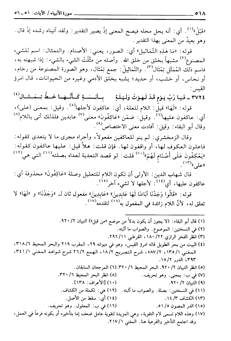قال شهاب الدين: الأولى أن تكون اللام للتعليل وصلة «عَاكِفُونَ» محذوفة أي: عاكفون عليها، أي: لأجلها لا لشيء آخر.