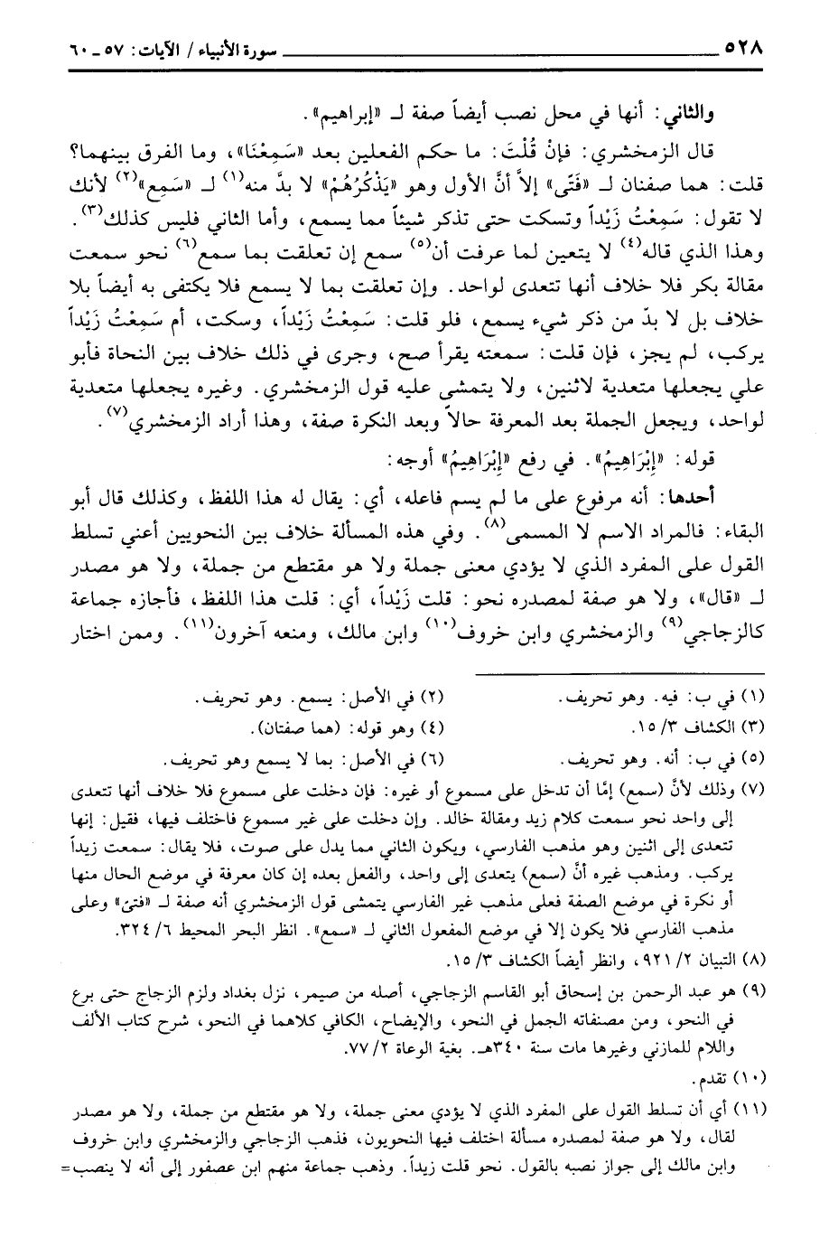 قال الزمخشري: فإن قُلْتَ: ما حكم الفعلين بعد «سَمِعْنَا» ، وما الفرق بينهما؟ قلت: هما صفنان ل «فَتًى» إلاَّ أنَّ الأول وهو «يَذْكُرُهُمْ» لا بدَّ منه ل «سَمِع» لأنك لا تقول: سَمِعْتُ زَيْداً وتسكت حتى تذكر شيئاً مما يسمعن وأما الثاني فليس كذلك. وهذا الذي قاله لا يتعين لما عرفت أن سمع إن تعلقت بما سمع نحو سمعت مقالة بكر فلا خلاف أنها تتعدى لواحد. وإن تعلقت بما لا يسمع فلا يكتفى به أيضاً بلا خلاف بل لا بدّ من ذكر شيء يسمع، فلو قلت: سَمِعْتُ زَيْداً، وسكت، أم سَمِعْتُ زَيْداً يركب، لم يجز، فإن قلت: سمعته يقرأ صح، وجرى في ذلك خرف بين النحاة فأبو علي يجعلها متعدية لاثنين، ولا يتمشى عليه قول الزمخشري. وغيره يجعلها متعدية لواحد، ويجعل الجملة بعد المعرفة حالاً وبعد النكرة صفة، وهذا أراد الزمخشري.
