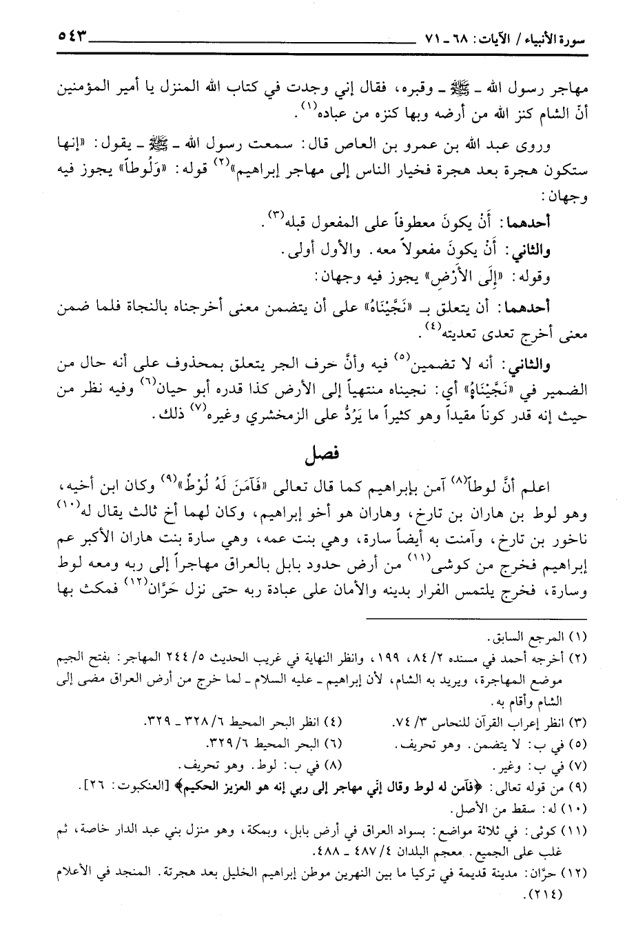 «وروى عبد الله بن عمرو بن العاص قال: سمعت رسول الله - صَلَّى اللَّهُ عَلَيْهِ وَسَلَّم َ - يقول:» إنها ستكون هجرة بعد هجرة فخيار الناس إلى مهاجر إبراهيم «قوله:» وَلُوطاً «يجوز فيه وجهان: