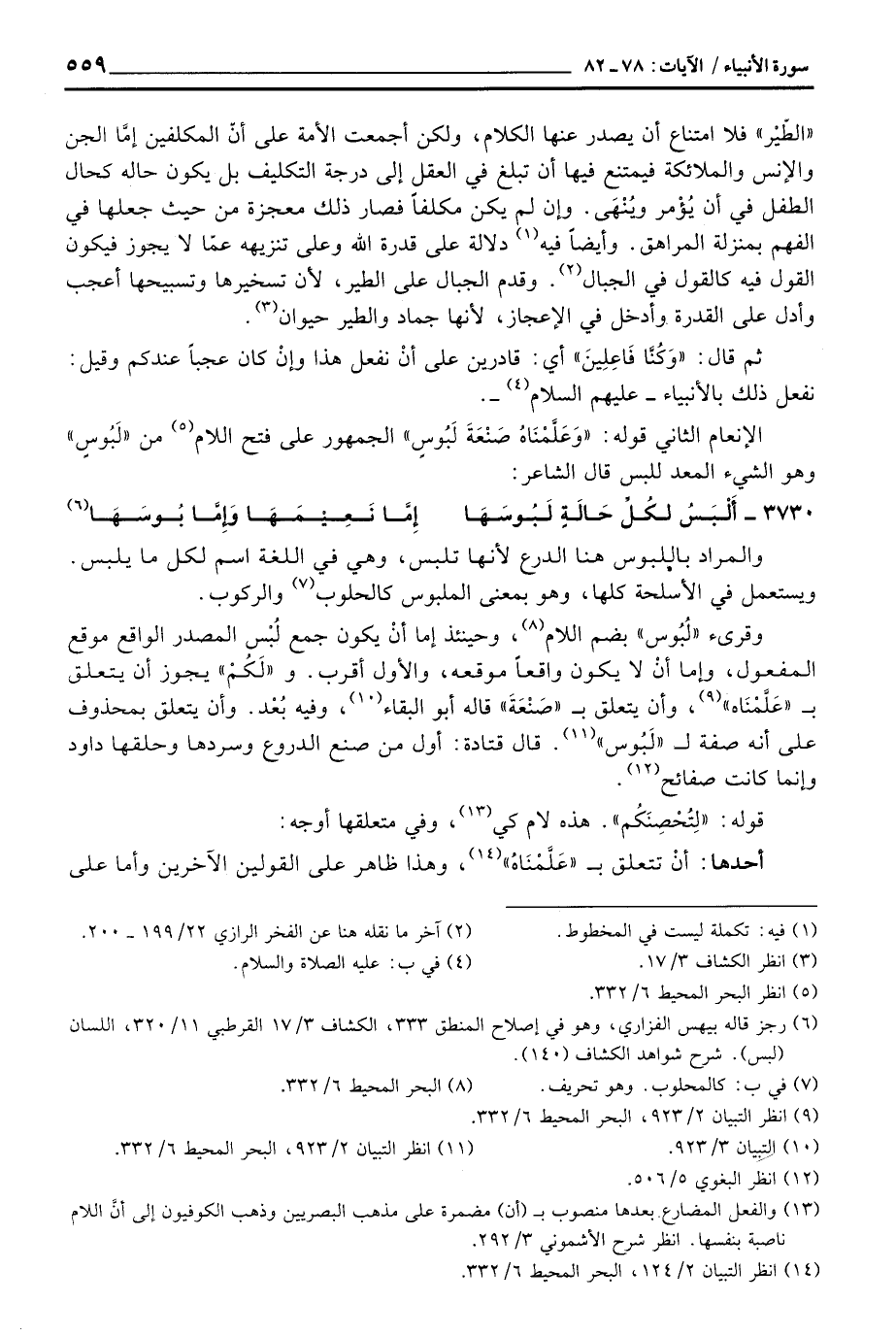 وقرئ «لُبُوس» بضم اللام، وحينئذ إما أنْ يكون جمع لُبْس المصدر الواقع موقع المفعول، وإما أنْ لا يكون واقعاً موقعه، والأول أقرب. و «لَكُمْ» يجز أن يتعلق ب «عَلَّمْنَاه» ، وأن يتعلق ب «صَنْعَةَ» قاله أبو البقاء، وفيه بُعْد. وأن يتعلق بمحذوف على أنه صفة ل «لَبُوس» . قال قتادة: أول من صنع الدروع وسردها وحلقها داود وإنما كانت صفائح.