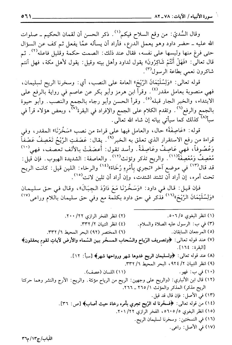فإن قيل: قال في داود: {وَسَخَّرْنَا مَعَ دَاوُودَ الجبال} ، وقال في حق سليمان {وَلِسُلَيْمَانَ الريح} فذكر في حق داود بكلمة مع وفي حق سليمان باللام وراعى
