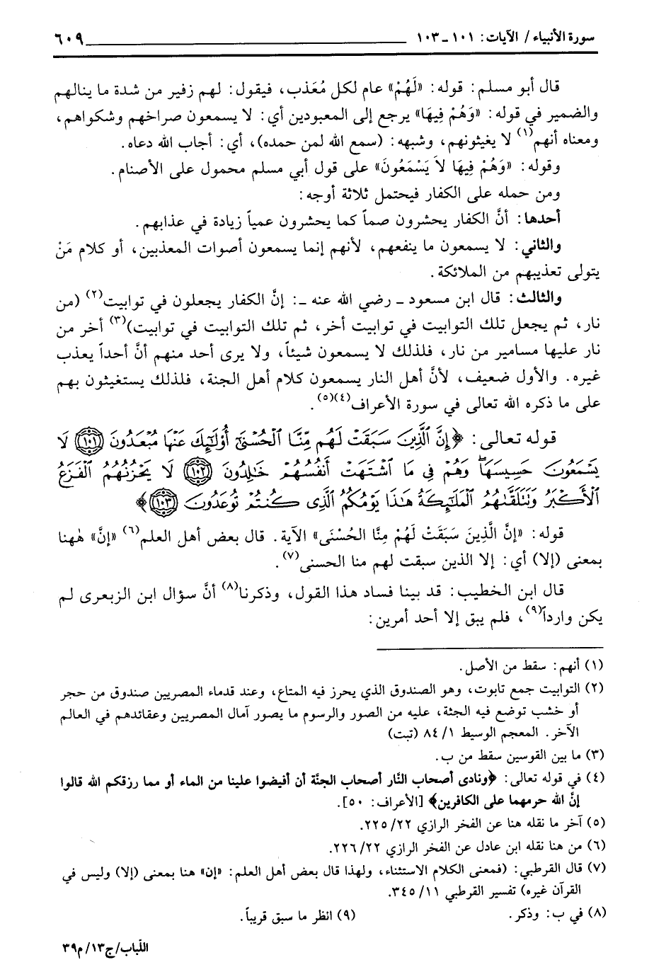 قوله: {إِنَّ الذين سَبَقَتْ لَهُمْ مِّنَّا الحسنى} الآية. قال بعض أهل العلم «إنَّ» ههنا بمعنى (إلا) أي: إلا الذين سبقت لهم منا الحسنى.