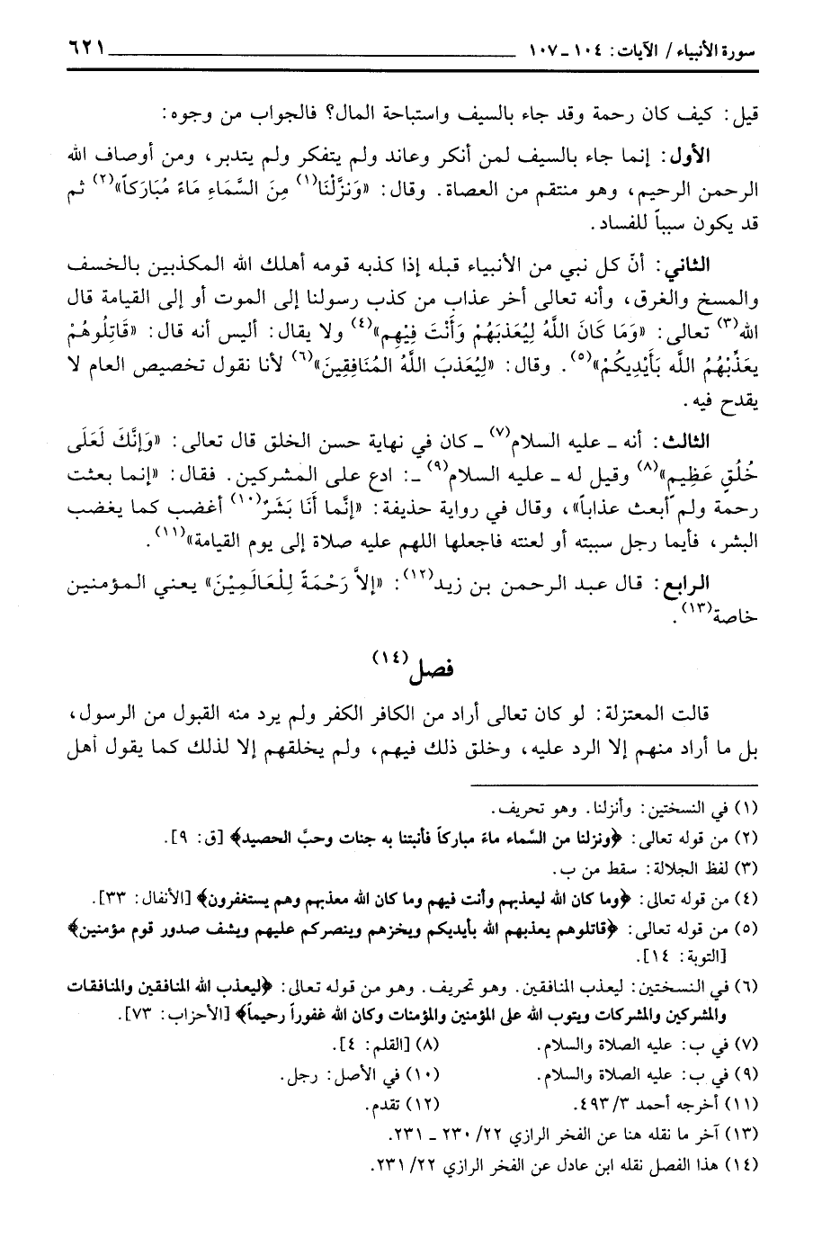 قالت المعتزلة: لو كان تعالى أراد من الكافر الكفر ولم يرد منه القبول من الرسول، بل ما أراد منهم إلا الرد عليه، وخلق ذلك فيهم، ولم يخلقهم إلا لذلك كما يقول أهل