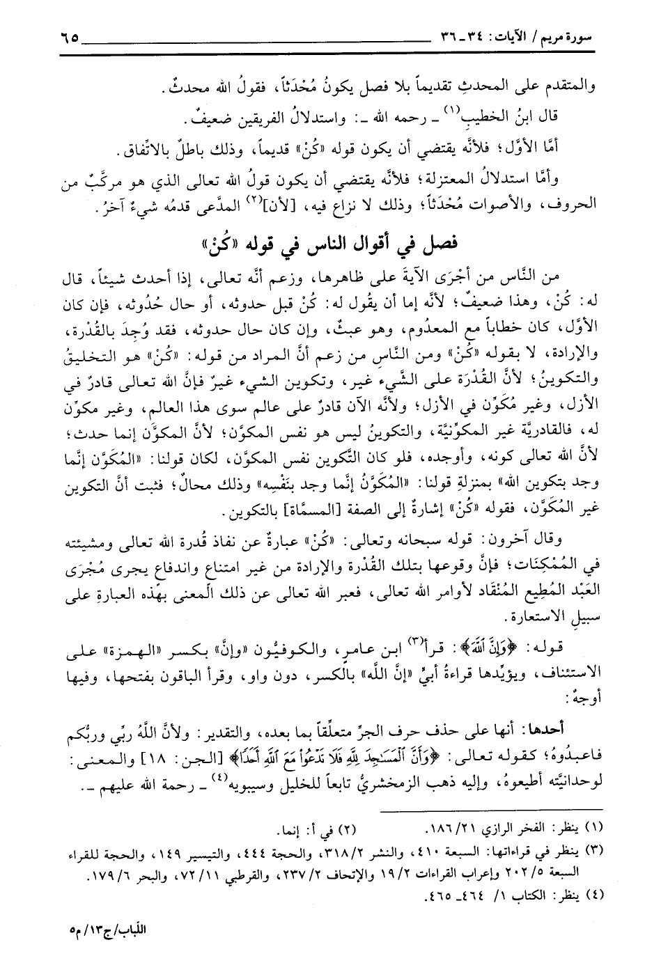 فصل في أقوال الناس في قوله «كُنْ»
