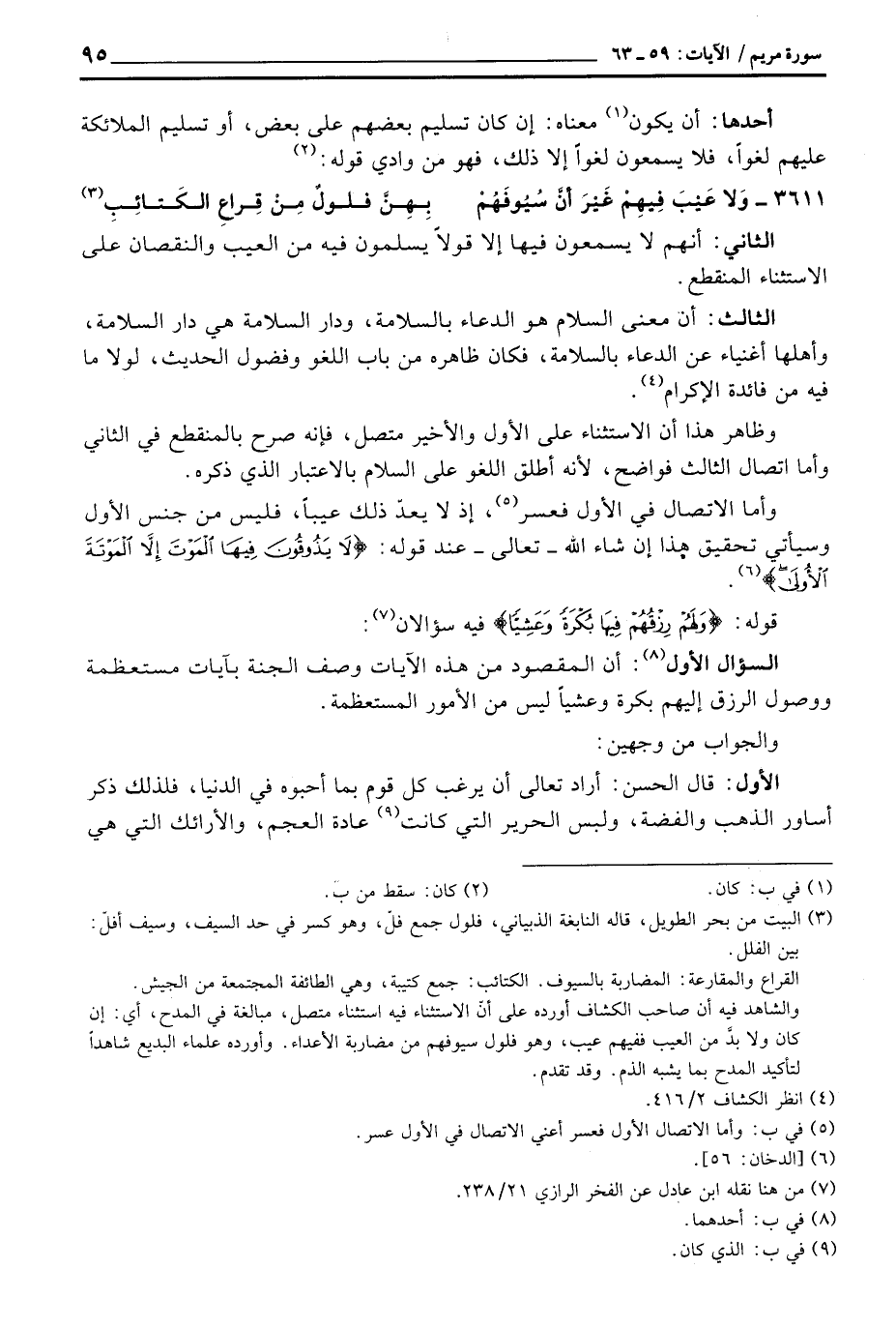 الثالث: أن معنى السلام هو الدعاء بالسلامة، ودار السلامة هي دار السلامة، وأهلها أغنياء عن الدعاء بالسلامة، فكان ظاهره من باب اللغو وفضول الحديث، لولا ما فيه من فائدة الإكرام.