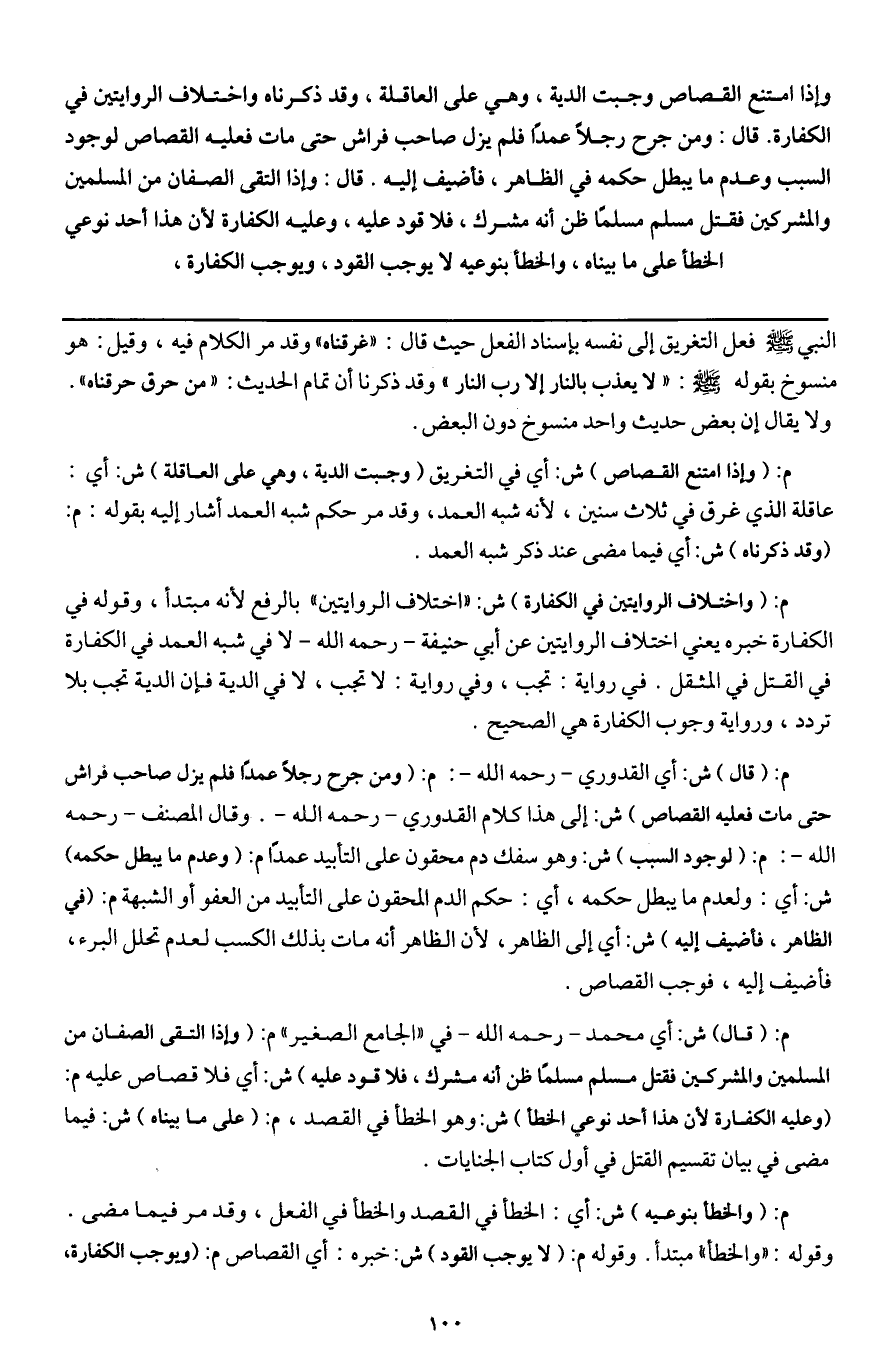 م: (واختلاف الروايتين في الكفارة) ش: " اختلاف الروايتين " بالرفع لأنه مبتدأ، وقوله في الكفارة خبره يعني اختلاف الروايتين عن أبي حنيفة - رَحِمَهُ اللَّهُ - لا في شبه العمد في الكفارة في القتل في المثقل. في رواية: تجب، وفي رواية: لا تجب، لا في الدية فإن الدية تجب بلا تردد، ورواية وجوب الكفارة هي الصحيحة.