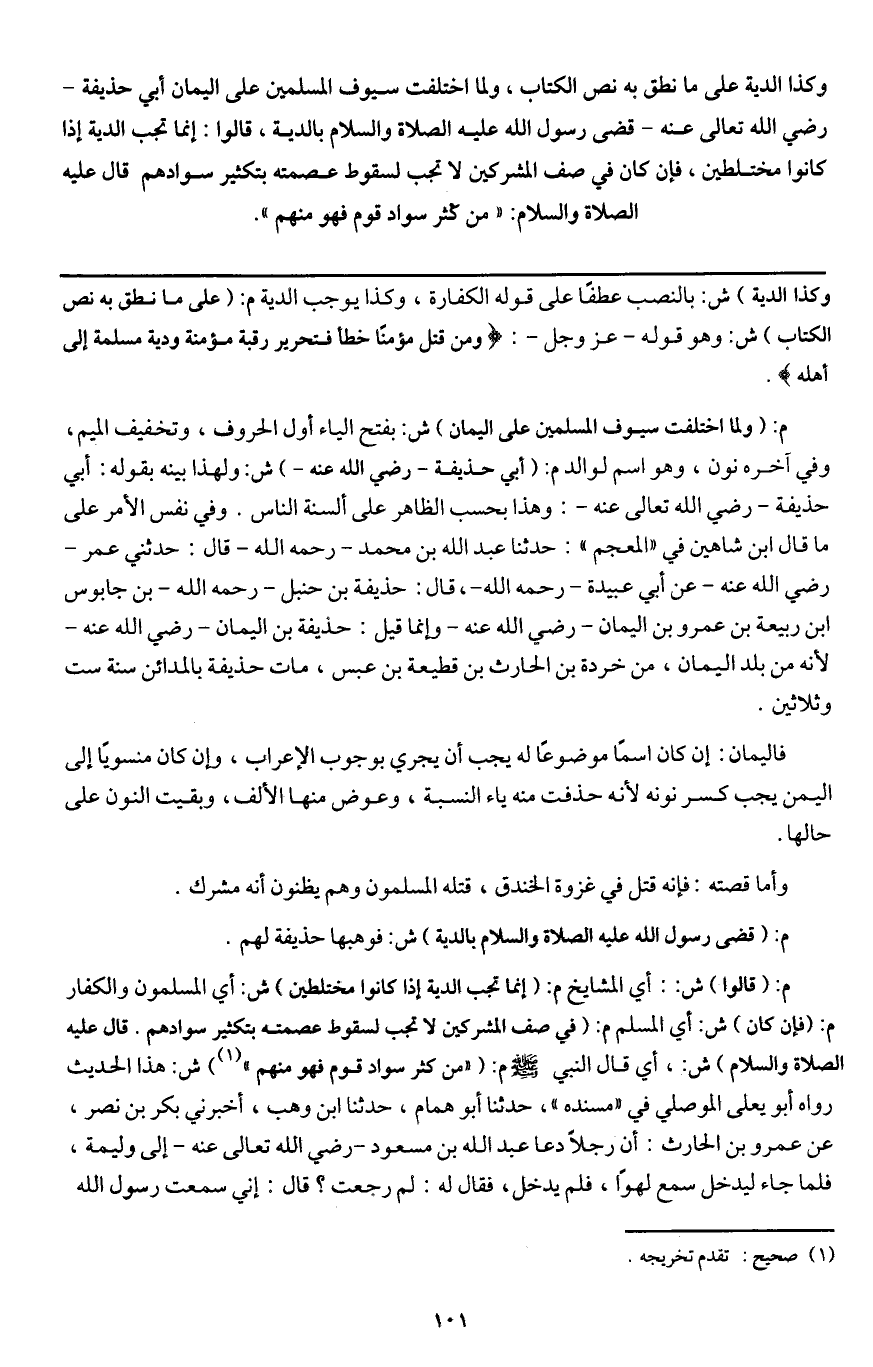 م: (قضى رسول الله - عَلَيْهِ الصَّلَاةُ وَالسَّلَامُ - بالدية) ش: فوهبها حذيفة لهم.