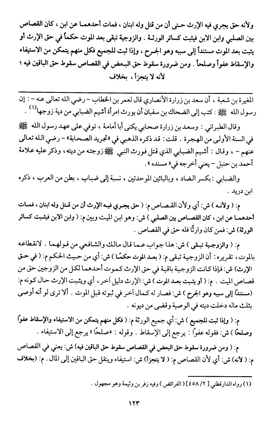 ـــــــــــــــــــــــــــــQالمغيرة بن شعبة، أن سعد بن زرارة الأنصاري قال لعمر بن الخطاب - رَضِيَ اللَّهُ تَعَالَى عَنْهُ -: «إن رسول الله - صَلَّى اللَّهُ عَلَيْهِ وَسَلَّمَ -: كتب إلى الضحاك بن سفيان أن يورث امرأة أشيم الضبابي من دية زوجها» .