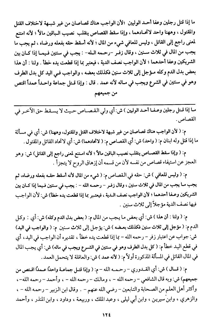 م: (قال) ش: أي القدوري - رَحِمَهُ اللَّهُ - م: (وإذا قتل جماعة واحدا عمدا اقتص من جميعهم) ش: وبه قال الشافعي - رَحِمَهُ اللَّهُ -، ومالك - رَحِمَهُ اللَّهُ -، وأحمد - رَحِمَهُ اللَّهُ -، وأكثر أهل العلم من الصحابة والتابعين - رَضِيَ اللَّهُ عَنْهُمْ -. وقال ابن الزبير - رَحِمَهُ اللَّهُ -، والزهري، وابن سيرين، وابن أبي ليلى، وعبد الملك، وربيعة، وداود، وابن المنذر، وأحمد