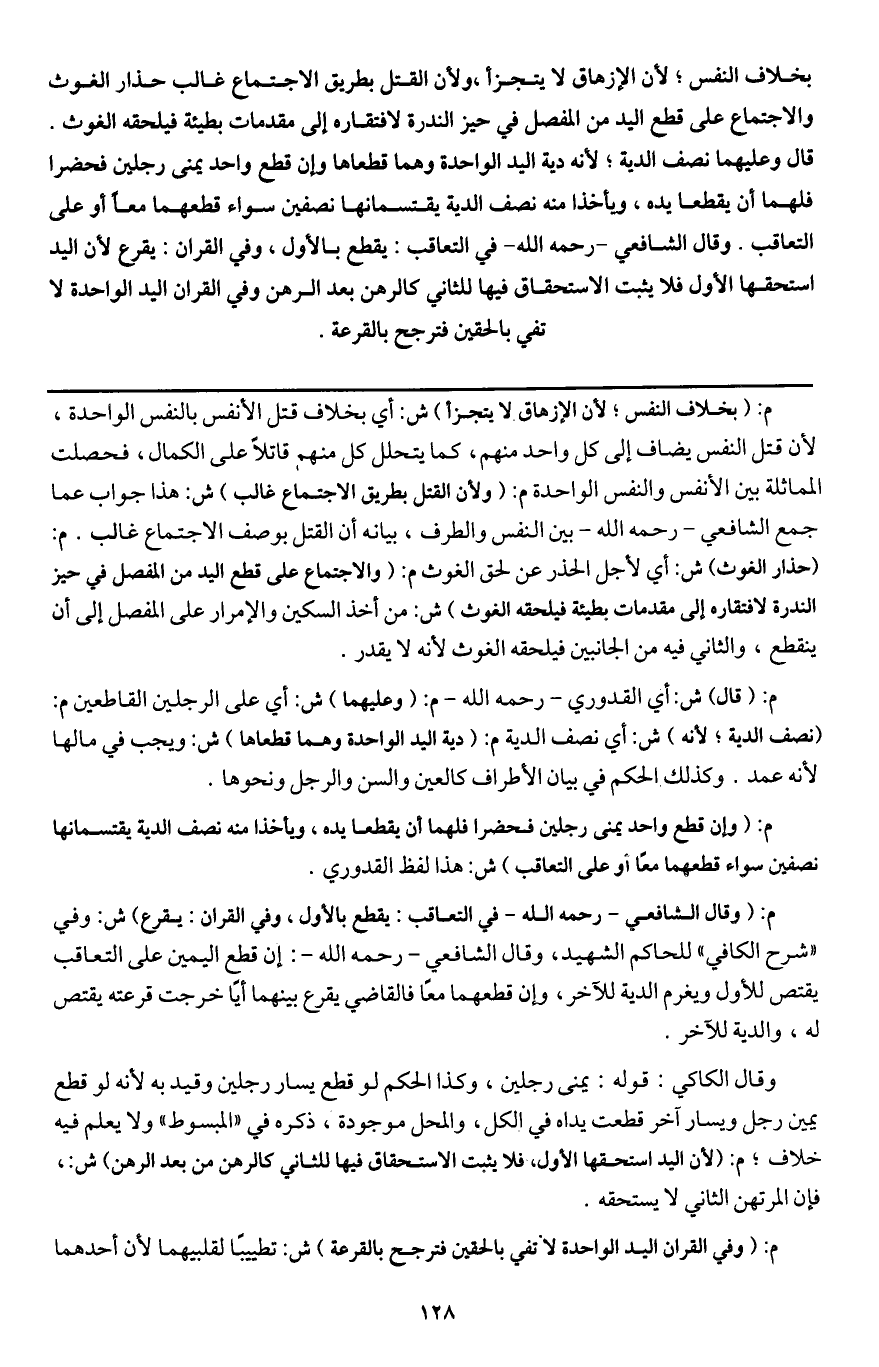 م: (وقال الشافعي - رَحِمَهُ اللَّهُ - في التعاقب: يقطع بالأول، وفي القران: يقرع) ش: وفي " شرح الكافي " للحاكم الشهيد، وقال الشافعي - رَحِمَهُ اللَّهُ -: إن قطع اليمين على التعاقب يقتص للأول ويغرم الدية للآخر، وإن قطعهما معا فالقاضي يقرع بينهما أيا خرجت قرعته يقتص له، والدية للآخر.