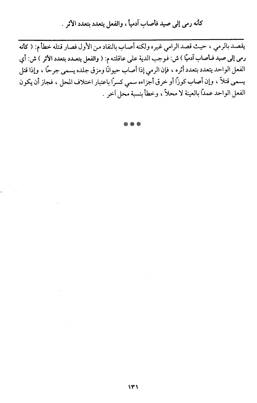كأنه رمى إلى صيد فأصاب آدميا، والفعل يتعدد بتعدد الأثر.