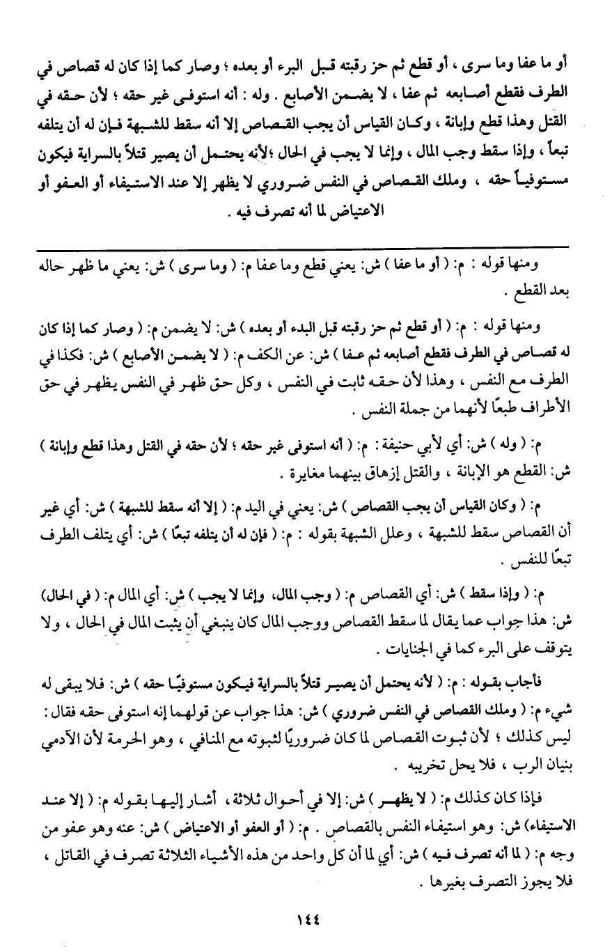 ـــــــــــــــــــــــــــــQومنها قوله: م: (أو ما عفا) ش: يعني قطع وما عفا م: (وما سرى) ش: يعني ما ظهر حاله بعد القطع.