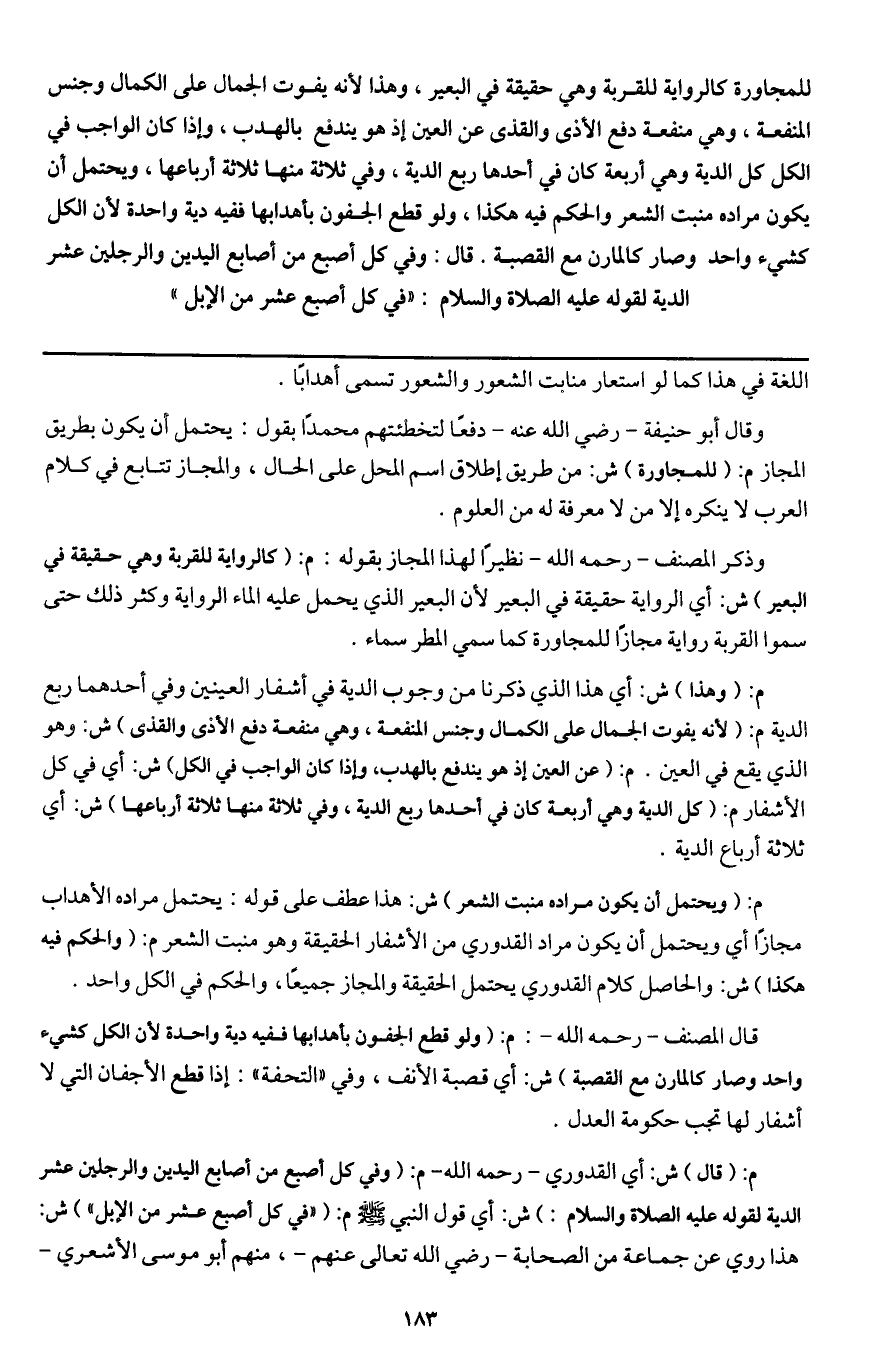 م: (ويحتمل أن يكون مراده منبت الشعر) ش: هذا عطف على قوله: يحتمل مراده الأهداب مجازا أي ويحتمل أن يكون مراد القدوري من الأشفار الحقيقة وهو منبت الشعر م: (والحكم فيه هكذا) ش: والحاصل كلام القدوري يحتمل الحقيقة والمجاز جميعا، والحكم في الكل واحد.