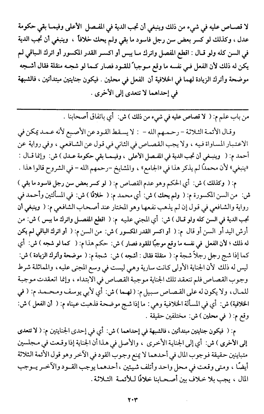 ـــــــــــــــــــــــــــــQمن باب علم م: (لا قصاص عليه في شيء من ذلك) ش: أي باتفاق أصحابنا.