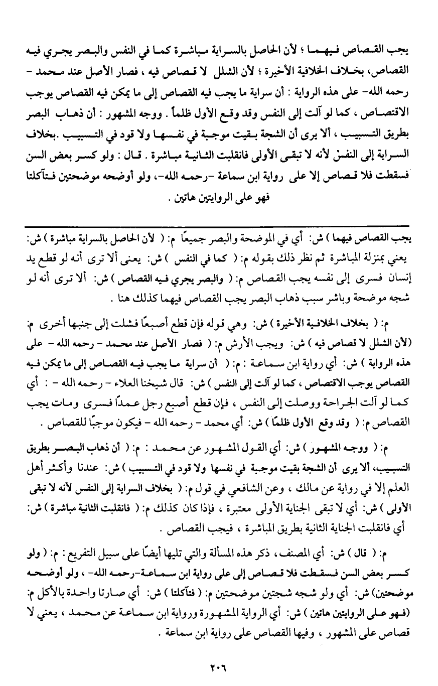 ـــــــــــــــــــــــــــــQيجب القصاص فيهما؛ لأن الحاصل بالسراية مباشرة كما في النفس والبصر يجري فيه القصاص، بخلاف الخلافية الأخيرة؛ لأن الشلل لا قصاص فيه، فصار الأصل عند محمد - رَحِمَهُ اللَّهُ - على هذه الرواية: أن سراية ما يجب فيه القصاص إلى ما يمكن فيه القصاص يوجب الاقتصاص، كما لو آلت إلى النفس وقد وقع الأول ظلما. ووجه المشهور: أن ذهاب البصر بطريق التسبيب، ألا يرى أن الشجة بقيت موجبة في نفسها ولا قود في التسبيب. بخلاف السراية إلى النفس لأنه لا تبقى الأولى فانقلبت الثانية مباشرة. قال: ولو كسر بعض السن فسقطت فلا قصاص إلا على رواية ابن سماعة - رَحِمَهُ اللَّهُ -، ولو أوضحه موضحتين فتآكلتا فهو على الروايتين هاتين.
