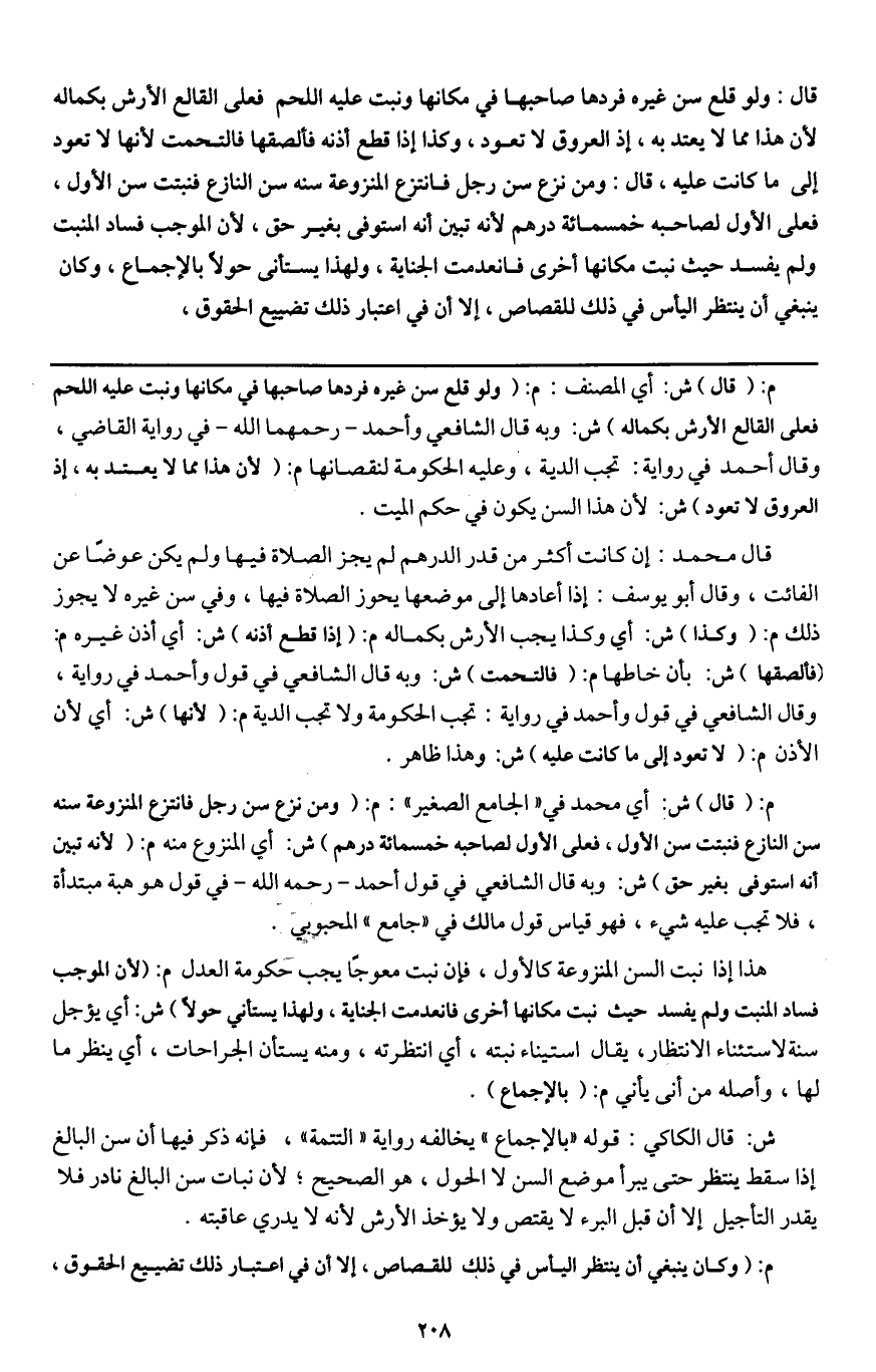 ش: قال الكاكي: قوله " بالإجماع " يخالفه رواية " التتمة "، فإنه ذكر فيها أن سن البالغ إذا سقط ينتظر حتى يبرأ موضع السن لا الحول، هو الصحيح؛ لأن نبات سن البالغ نادر فلا يقدر التأجيل إلا أن قبل البرء لا يقتص ولا يؤخذ الأرش لأنه لا يدري عاقبته.