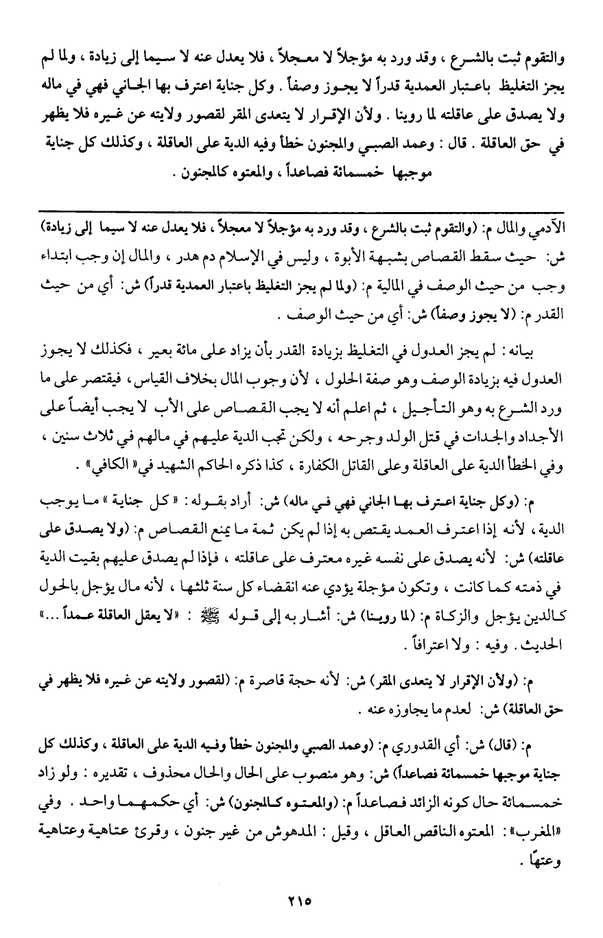 قال: وعمد الصبي والمجنون خطأ وفيه الدية على العاقلة، وكذلك كل جناية موجبها خمسمائة فصاعدا، والمعتوه كالمجنون.