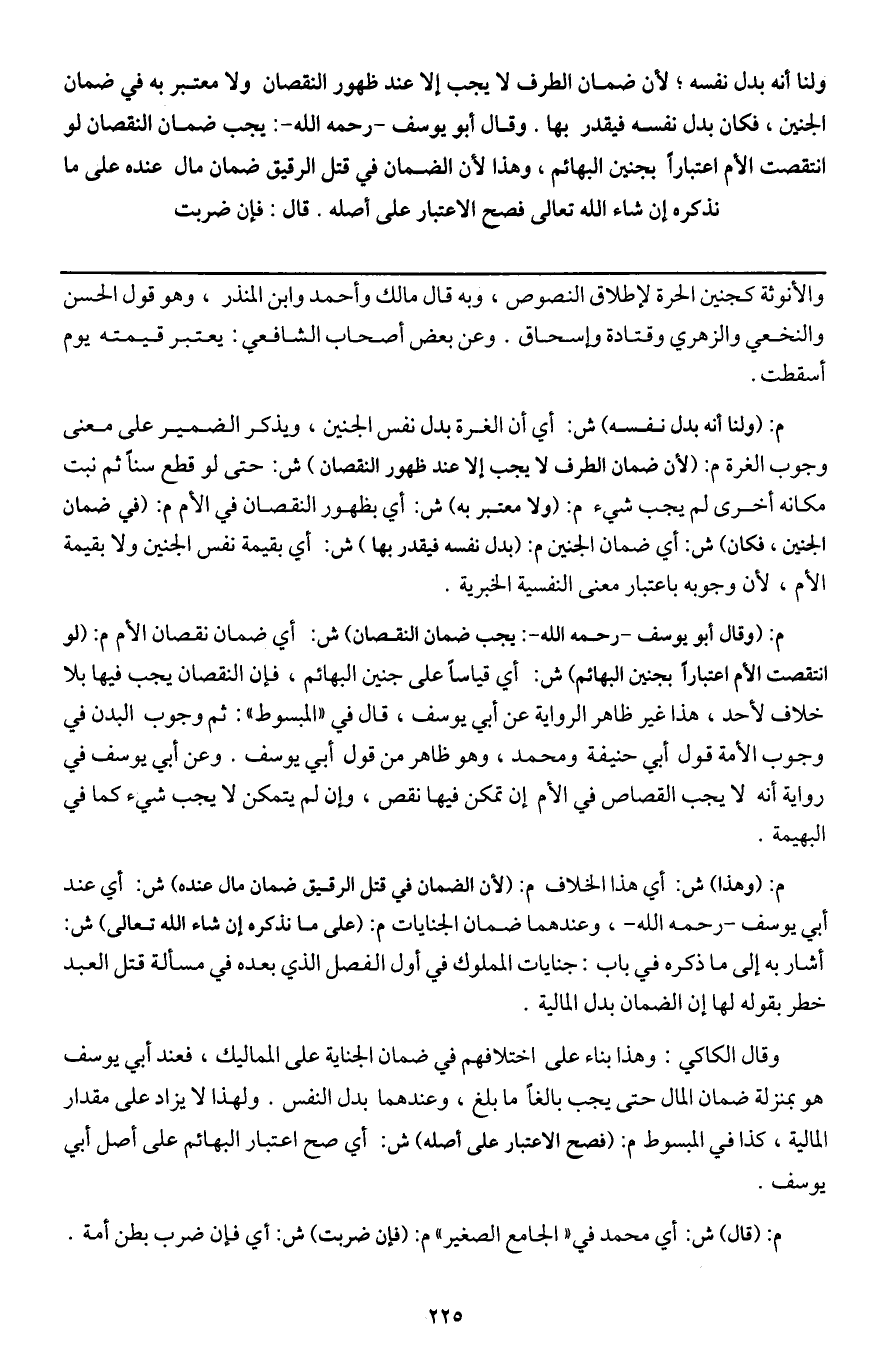 م: (وقال أبو يوسف - رَحِمَهُ اللَّهُ -: يجب ضمان النقصان) ش: أي ضمان نقصان الأم م: (لو انتقصت الأم اعتبارا بجنين البهائم) ش: أي قياسا على جنين البهائم، فإن النقصان يجب فيها بلا خلاف لأحد، هذا غير ظاهر الرواية عن أبي يوسف، قال في " المبسوط ": ثم وجوب البدن في وجوب الأمة قول أبي حنيفة ومحمد، وهو ظاهر من قول أبي يوسف. وعن أبي يوسف في رواية أنه لا يجب القصاص في الأم إن تمكن فيها نقص، وإن لم يتمكن لا يجب شيء كما في البهيمة.