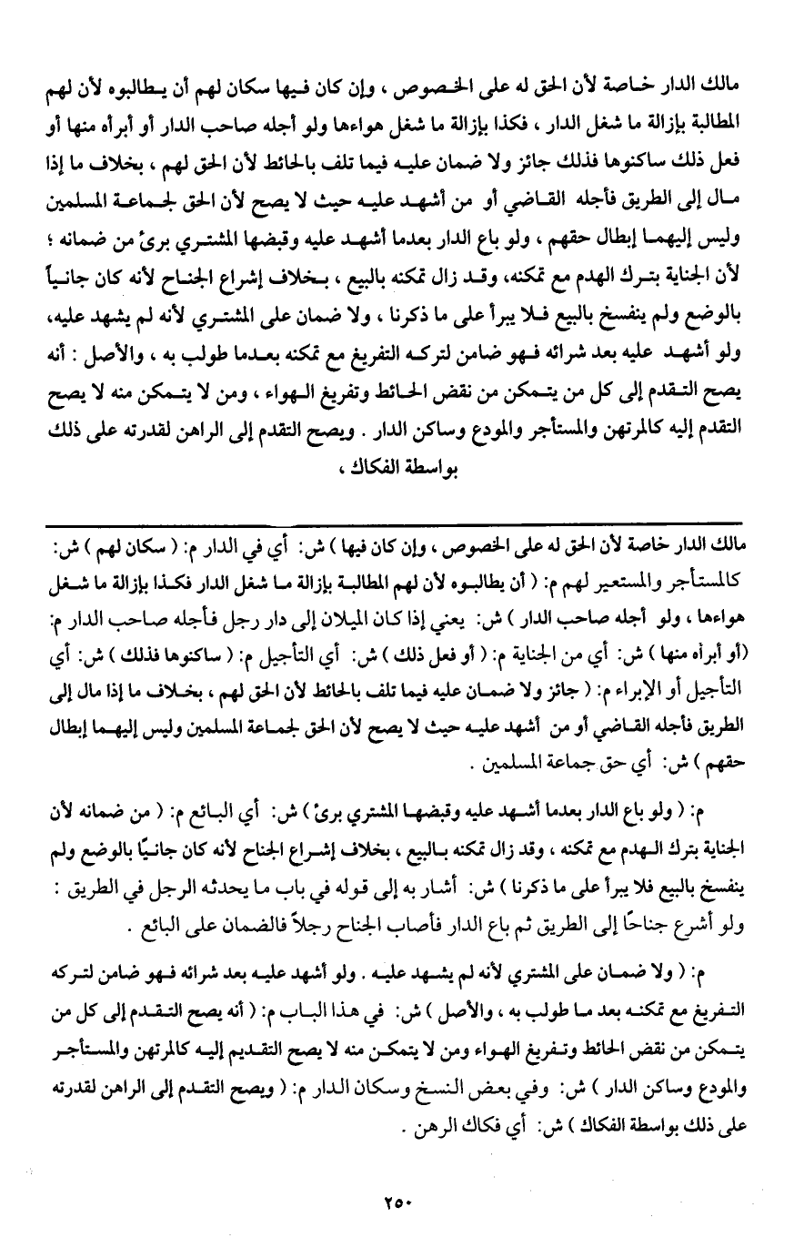 م: (ولا ضمان على المشتري لأنه لم يشهد عليه. ولو أشهد عليه بعد شرائه فهو ضامن لتركه التفريغ مع تمكنه بعد ما طولب به، والأصل) ش: في هذا الباب م: (أنه يصح التقدم إلى كل من يتمكن من نقض الحائط وتفريغ الهواء ومن لا يتمكن منه لا يصح التقديم إليه كالمرتهن والمستأجر والمودع وساكن الدار) ش: وفي بعض النسخ وسكان الدار م: (ويصح التقدم إلى الراهن لقدرته على ذلك بواسطة الفكاك) ش: أي فكاك الرهن.