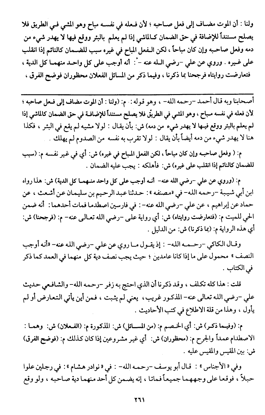 م: (وفيما ذكر) ش: أي الخصم م: (من المسائل) ش: المذكورة م: (الفعلان) ش: وهما: الاصطدام عمدا والجرح م: (محظوران) ش: أي غير مشروعين إذا كان كذلك م: (فوضح الفرق) ش: بين المقيس والمقيس عليه.