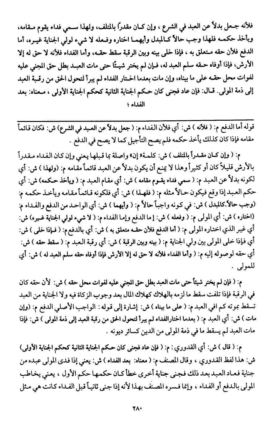 ـــــــــــــــــــــــــــــQقوله أما الدفع م: (فلأنه) ش: أي فلأن الفداء م: (جعل بدلا عن العبد في الشرع) ش: فكان قائما مقامه فإذا كان كذلك يأخذ حكمه فلم: يصح التأجيل كما لا يصح في الدفع. م: (وإن كان مقدرا بالمتلف) ش: كلمة " إن " واصلة بما قبلها يعني وإن كان الفداء مقدرا بالأرش قليلا كان أو كثيرا وهذا لا يمنع أن يكون بدلا عن العبد قائما مقامه م: (ولهذا) ش: أي لكونه بدلا عن العبد م: (سمي فداء يقوم مقامه) ش: أي مقام العبد م: (ويأخذ حكمه) ش: أي حكم العبد إذا وقع فيكون حالا مثله م: (فلهذا) ش: أي فلكونه قائما مقامه ويأخذ حكمه م: (وجب حالا كالمبدل) ش: في كونه واجبا حالا م: (وأيهما) ش: أي الواحد من الدفع والفداء م: (اختاره) ش: أي المولى م: (وفعله) ش: إما الدفع وإما الفداء م: (لا شيء لولي الجناية غيره) ش: أي غير الذي اختاره المولى م: (أما الدفع فلأن حقه متعلق به) ش: أي بالدفع م: (فإذا خلى) ش: أي فإذا خلى المولى بين ولي الجناية م: (بينه وبين الرقبة) ش: أي رقبة العبد م: (سقط حقه) ش: أي حقه لوصوله إليه م: (وأما الفداء فلأنه لا حق له إلا الأرش فإذا أوفاه، حقه سلم العبد له) ش: أي للمولى م: (فإن لم يختر شيئا حتى مات العبد بطل حق المجني عليه لفوات محل حقه) ش: لأن حقه كان في الرقبة فإذا تلفت سقط ما لزمه بالهلاك كهلاك المال بعد وجوب الزكاة فيه ولا الجناية من العبد تسقط بموته كما في العبد م: (على ما بيناه) ش: إشارة إلى قوله: الواجب الأصلي الدفع م: (وإن مات) ش: أي العبد م: (بعدما اختار الفداء لم يبرأ لتحول الحق من رقبة العبد إلى ذمة المولى) ش: فإذا مات العبد لم يسقط ما في ذمة المولى من الدين كسائر ديونه.