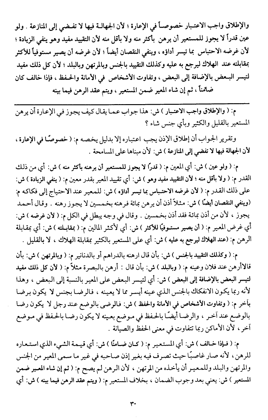 ـــــــــــــــــــــــــــــQم: (والإطلاق واجب الاعتبار) ش: هذا جواب عما يقال كيف يجوز في الإعارة أن يرهن المستعير بالقليل والكثير وبأي جنس شاء؟