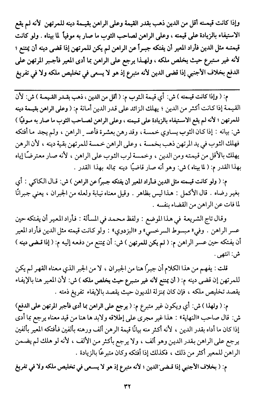 قلت: يفهم من هذا الكلام أن جبرا هنا من الجبران، لا من الجبر الذي معناه القهر لم يكن للمرتهن إن قضى دينه م: (أن يمتنع لأنه غير متبرع حيث يخلص ملكه) ش: لأن المعير هنا بالإيفاء يقصد تخليص ملكه، فإن كان بمنزلة المديون حيث يقصد بالإيفاء تفريغ ذمته.