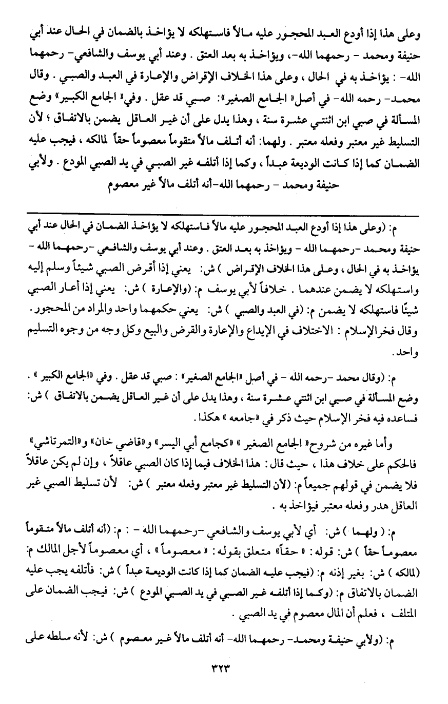 م: (وقال محمد - رَحِمَهُ اللَّهُ - في أصل " الجامع الصغير ": صبي قد عقل. وفي " الجامع الكبير ". وضع المسألة في صبي ابن اثنتي عشرة سنة، وهذا يدل على أن غير العاقل يضمن بالاتفاق) ش: فساعده فيه فخر الإسلام حيث ذكر في "جامعه " هكذا.