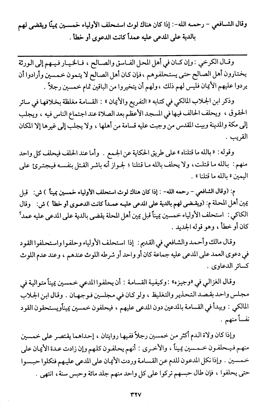 ـــــــــــــــــــــــــــــQوقال الكرخي: وإن كان في أهل المحل الفاسق والصالح، فالخيار فيهم إلى الورثة يختارون أهل الصالح حتى يستحلفوهم، فإن كان أهل الصالح لا يتمون خمسين وأرادوا أن يردوا عليهم الأيمان فليس لهم ذلك، ولهم أن يتخيروا من الباقين تمام خمسين رجلا.