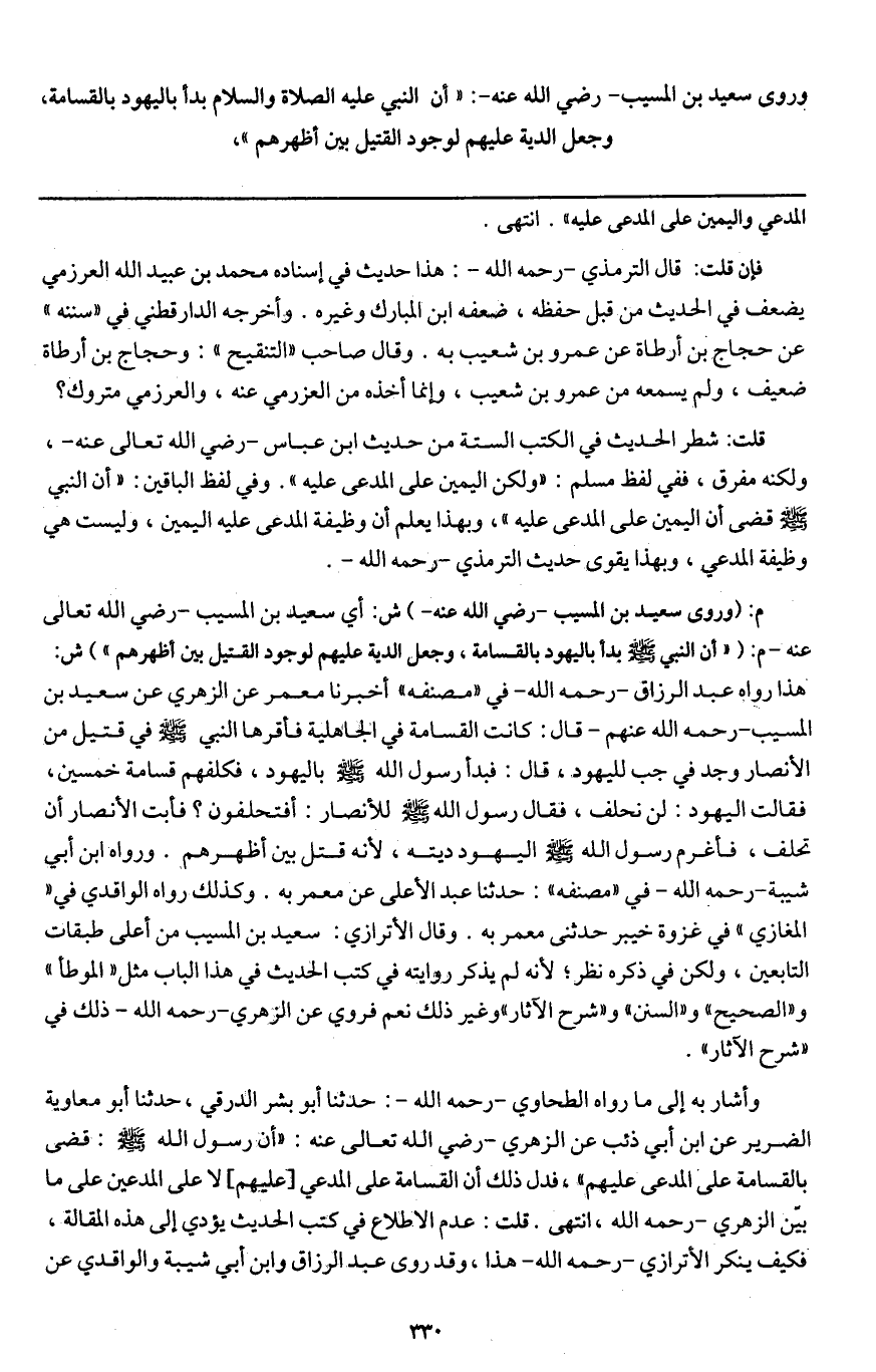 وروى سعيد بن المسيب - رَضِيَ اللَّهُ عَنْهُ -: «أن النبي - عَلَيْهِ الصَّلَاةُ وَالسَّلَامُ - بدأ باليهود بالقسامة، وجعل الدية عليهم لوجود القتيل بين أظهرهم» ،