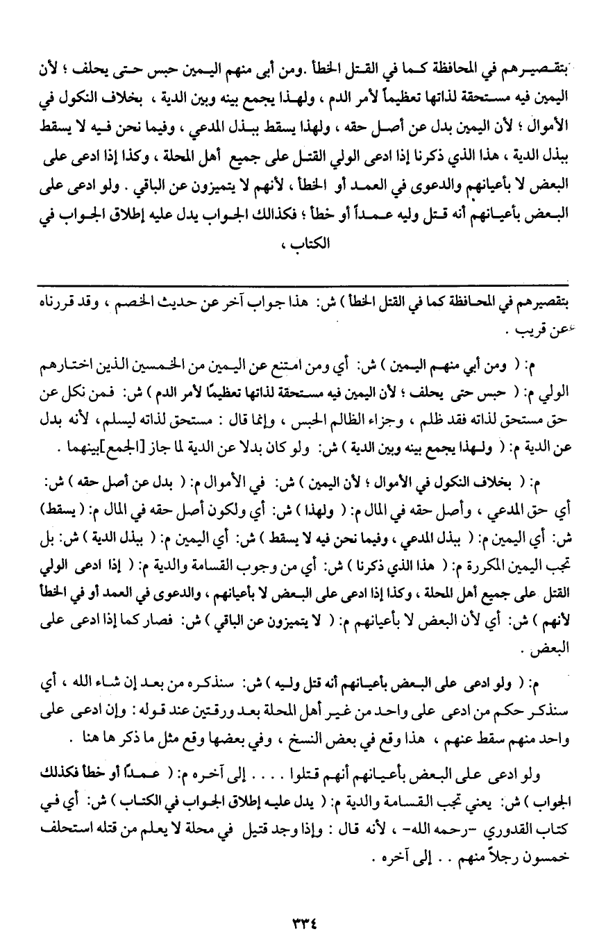 ـــــــــــــــــــــــــــــQبتقصيرهم في المحافظة كما في القتل الخطأ) ش: هذا جواب آخر عن حديث الخصم، وقد قررناه عن قريب.