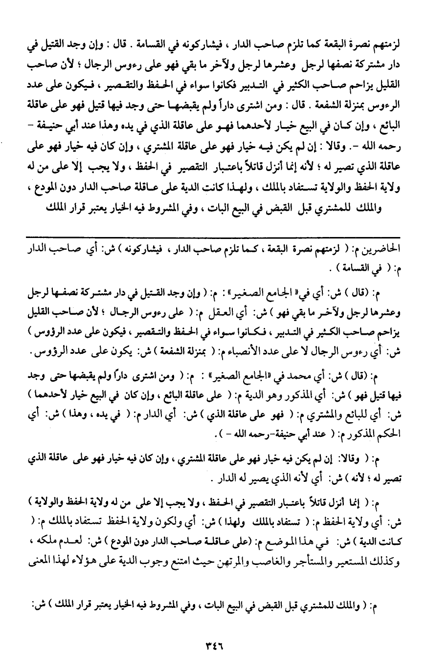 ـــــــــــــــــــــــــــــQالحاضرين م: (لزمتهم نصرة البقعة، كما تلزم صاحب الدار، فيشاركونه) ش: أي صاحب الدار م: (في القسامة) .