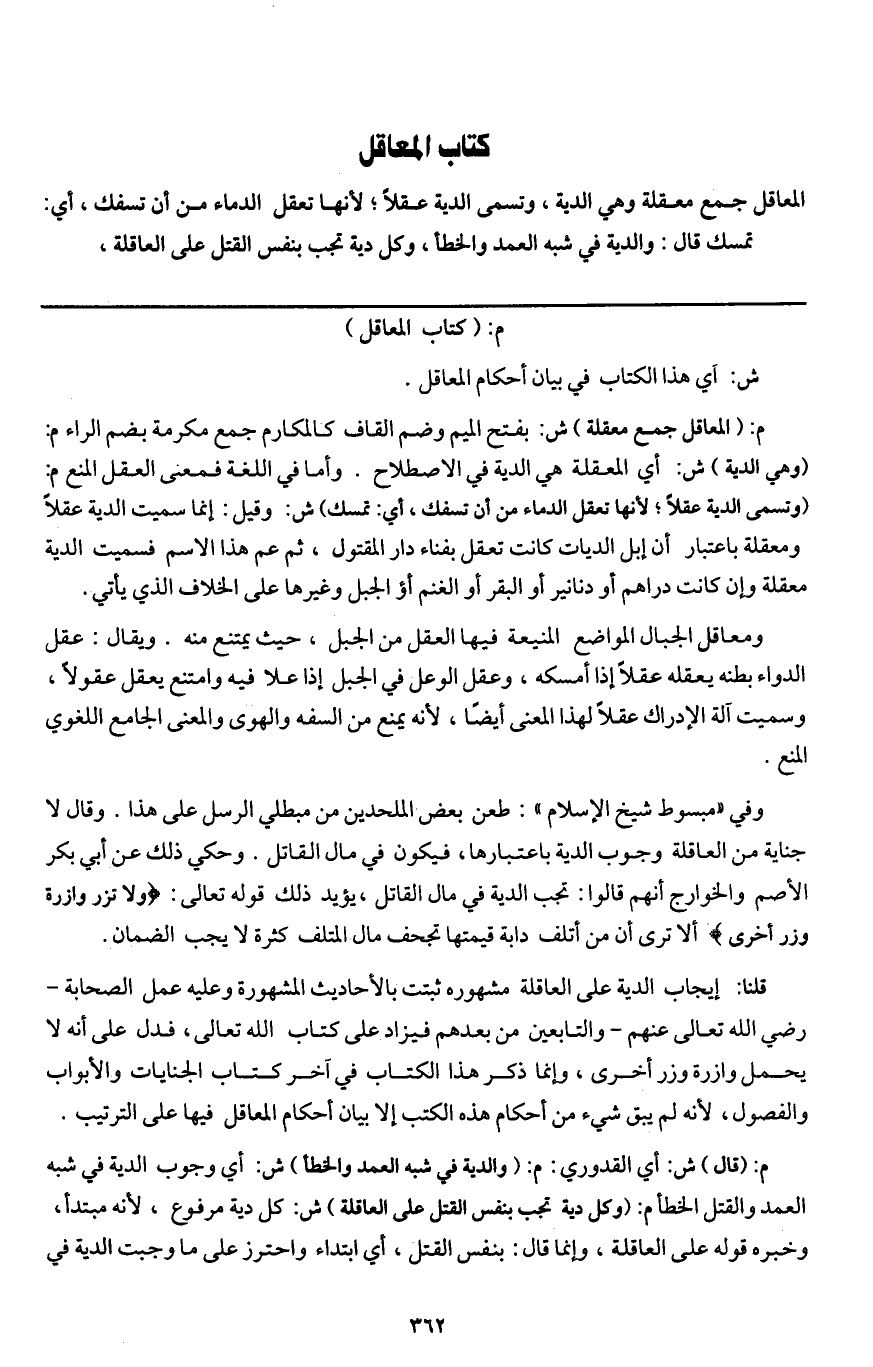 كتاب المعاقل المعاقل جمع معقلة وهي الدية، وتسمى الدية عقلا؛ لأنها تعقل الدماء من أن تسفك، أي: تمسك