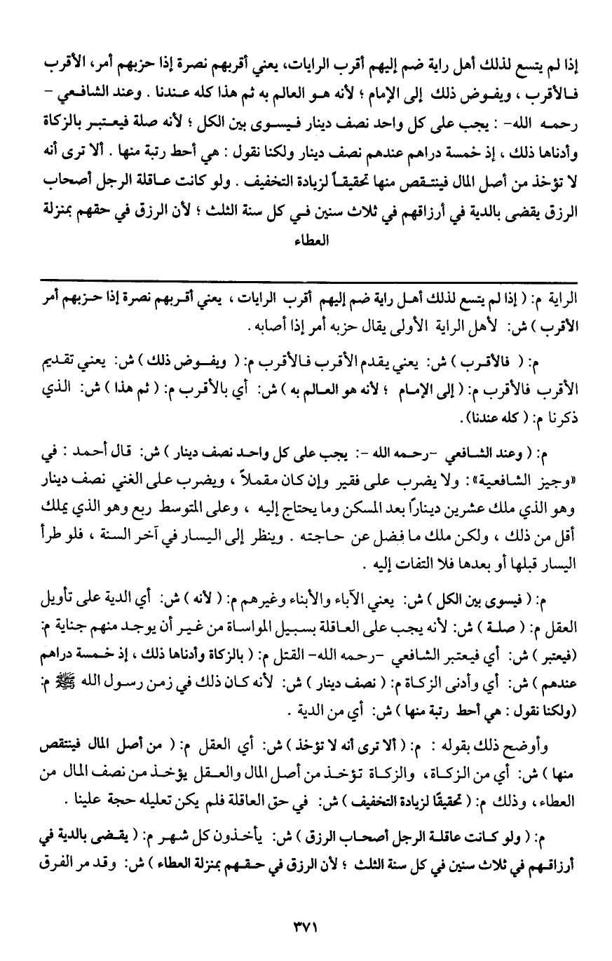 ـــــــــــــــــــــــــــــQالراية م: (إذا لم يتسع لذلك أهل راية ضم إليهم أقرب الرايات، يعني أقربهم نصرة إذا حزبهم أمر الأقرب) ش: لأهل الراية الأولى يقال: حزبه أمر إذا أصابه.
