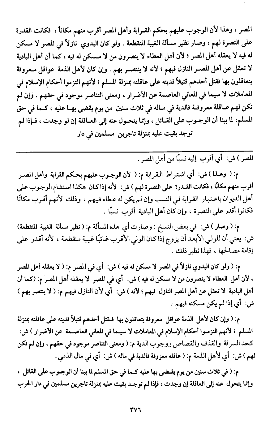 ـــــــــــــــــــــــــــــQالمصر) ش: أي أقرب إليه نسبا من أهل المصر.