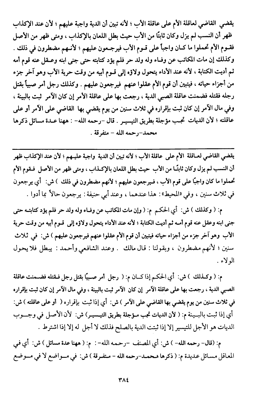 م: (قال - رَحِمَهُ اللَّهُ -) ش: أي المصنف - رَحِمَهُ اللَّهُ -: م: (هاهنا عدة مسائل) ش: أي في المعاقل مسائل عديدة م: (ذكرها محمد - رَحِمَهُ اللَّهُ - متفرقة) ش: في مواضع لا في موضع