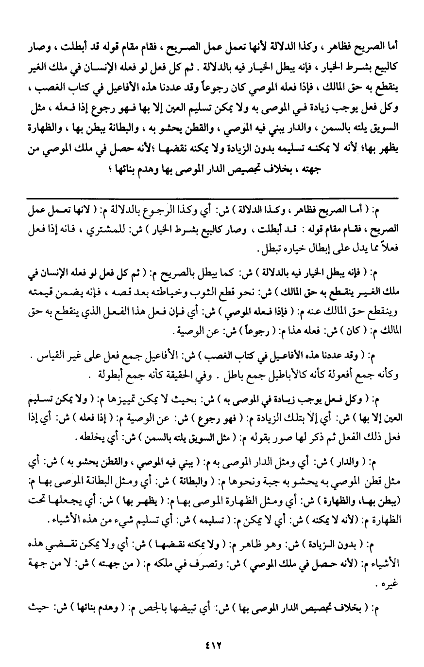 أما الصريح فظاهر، وكذا الدلالة لأنها تعمل عمل الصريح، فقام مقام قوله قد أبطلت، وصار كالبيع بشرط الخيار، فإنه يبطل الخيار فيه بالدلالة. ثم كل فعل لو فعله الإنسان في ملك الغير ينقطع به حق المالك، فإذا فعله الموصي كان رجوعا وقد عددنا هذه الأفاعيل في كتاب الغصب، وكل فعل يوجب زيادة في الموصى به ولا يمكن تسليم العين إلا بها فهو رجوع إذا فعله، مثل السويق يلته بالسمن، والدار يبني فيه الموصي، والقطن يحشو به، والبطانة يبطن بها، والظهارة يظهر بها؛ لأنه لا يمكنه تسليمه بدون الزيادة ولا يمكنه نقضها؛ لأنه حصل في ملك الموصي من جهته، بخلاف تجصيص الدار الموصى بها وهدم بنائها؛