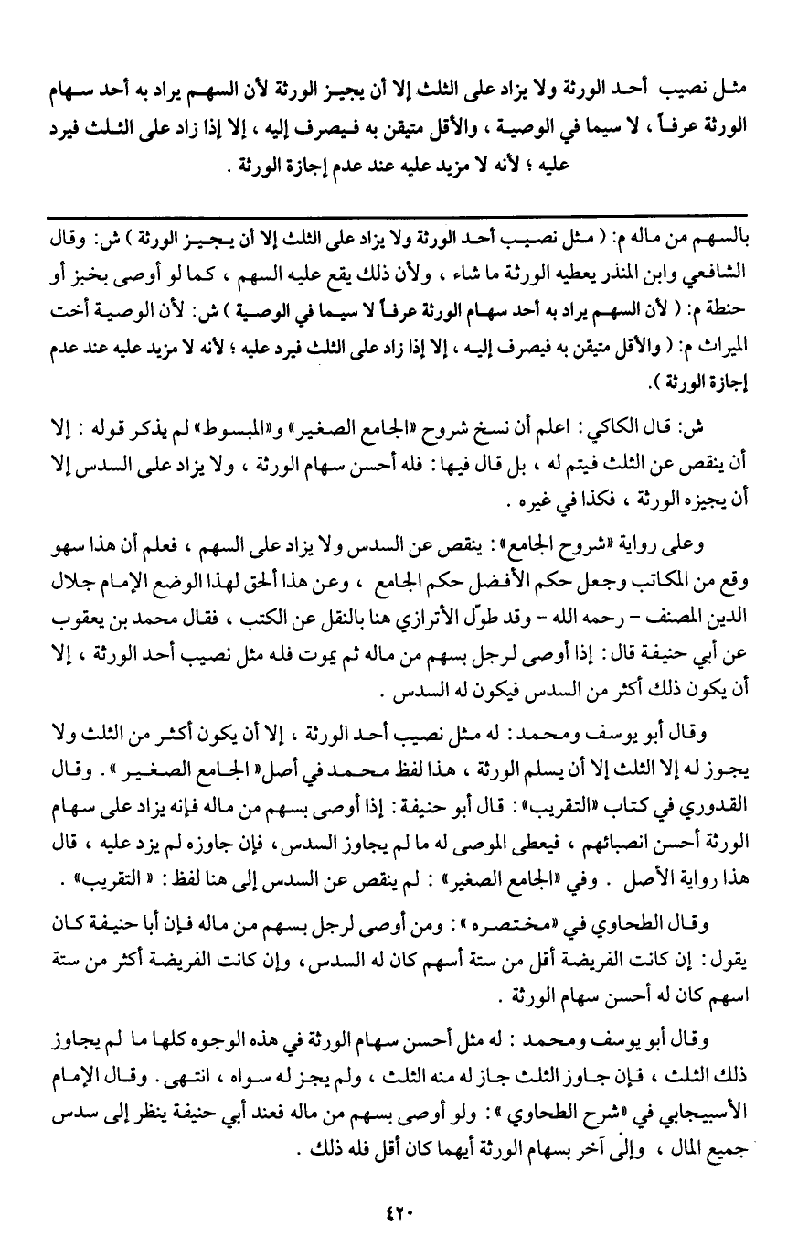 ش: قال الكاكي: اعلم أن نسخ شروح " الجامع الصغير " و" المبسوط " لم يذكر قوله: إلا أن ينقص عن الثلث فيتم له، بل قال فيها: فله أحسن سهام الورثة، ولا يزاد على السدس إلا أن يجيزه الورثة، فكذا في غيره.