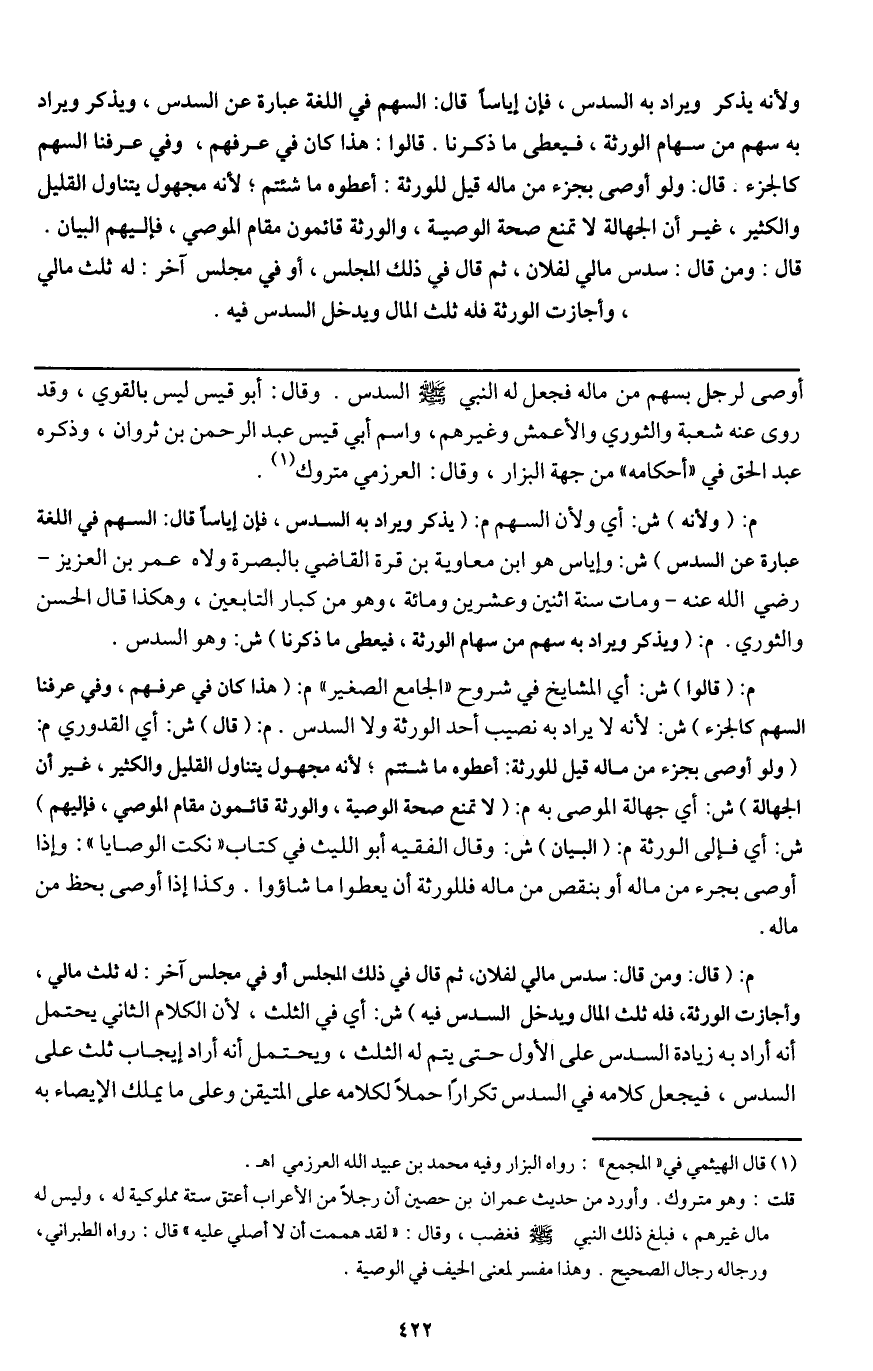 ـــــــــــــــــــــــــــــQأوصى لرجل بسهم من ماله فجعل له النبي - صَلَّى اللَّهُ عَلَيْهِ وَسَلَّمَ - السدس.» وقال: أبو قيس ليس بالقوي، وقد روى عنه شعبة والثوري والأعمش وغيرهم، واسم أبي قيس عبد الرحمن بن ثروان، وذكره، عبد الحق في "أحكامه " من جهة البزار، وقال: العرزمي متروك.