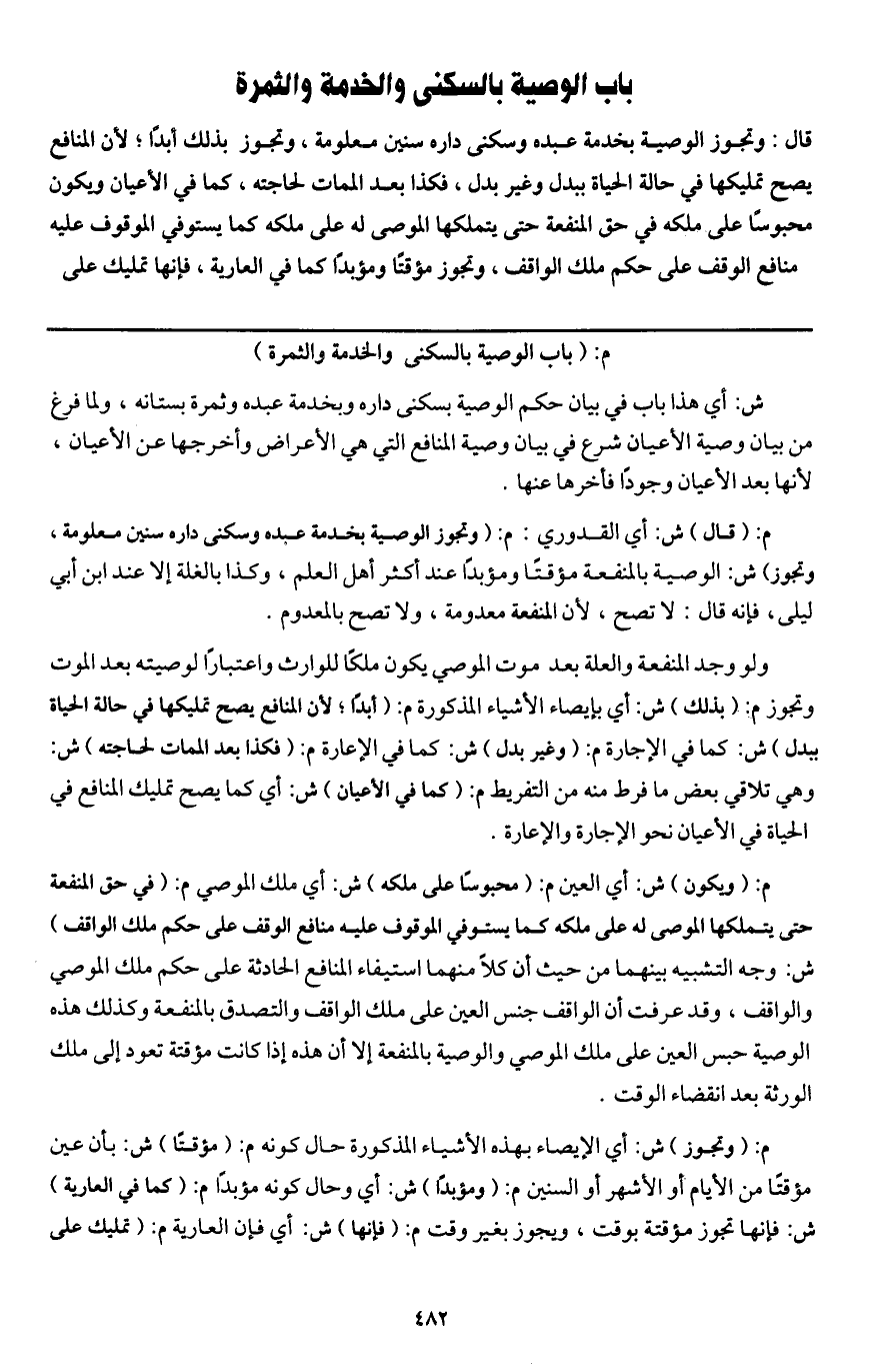 [باب الوصية بالسكنى والخدمة والثمرة]